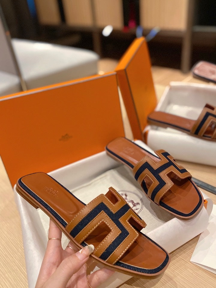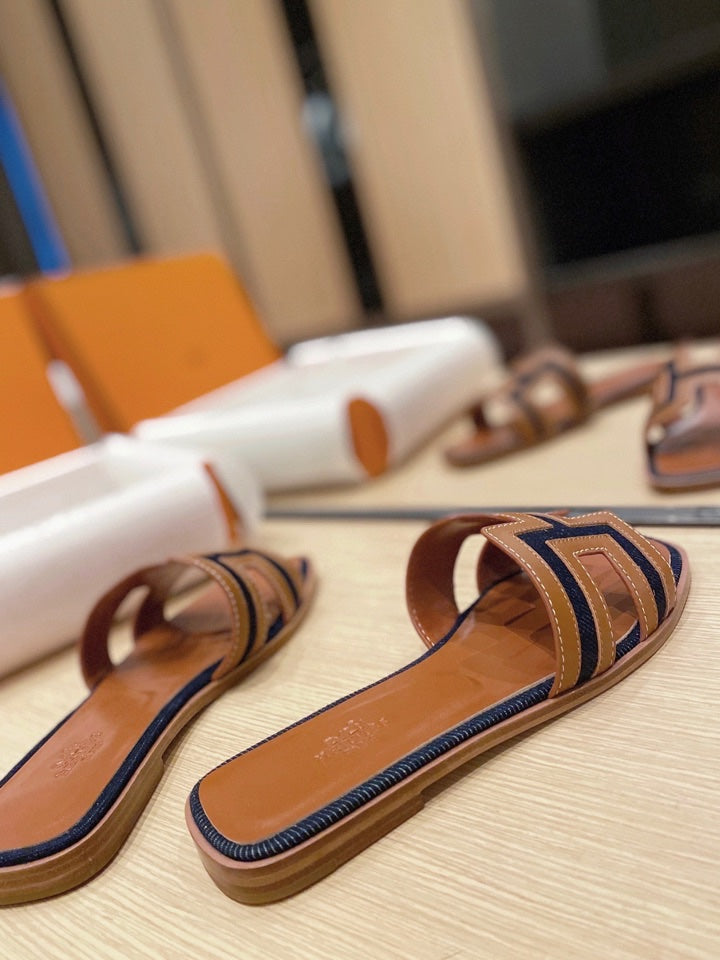 0RAN SANDALS IN BRONZE BROWN CALFSKIN AND BLACK CANVAS