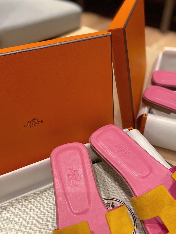 0RAN SANDALS IN DIJON YELLOW SUEDE AND DEEP PINK CALFSKIN