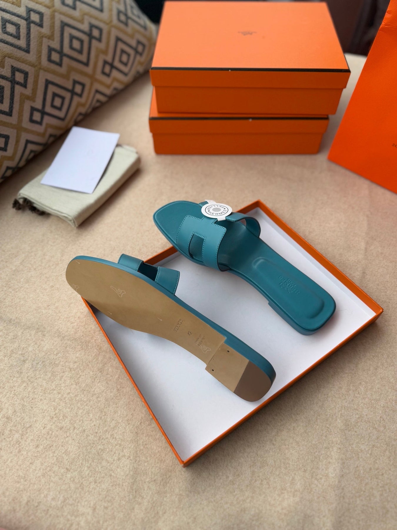 0RAN SANDALS IN SAPPHIRE BLUE CALFSKIN
