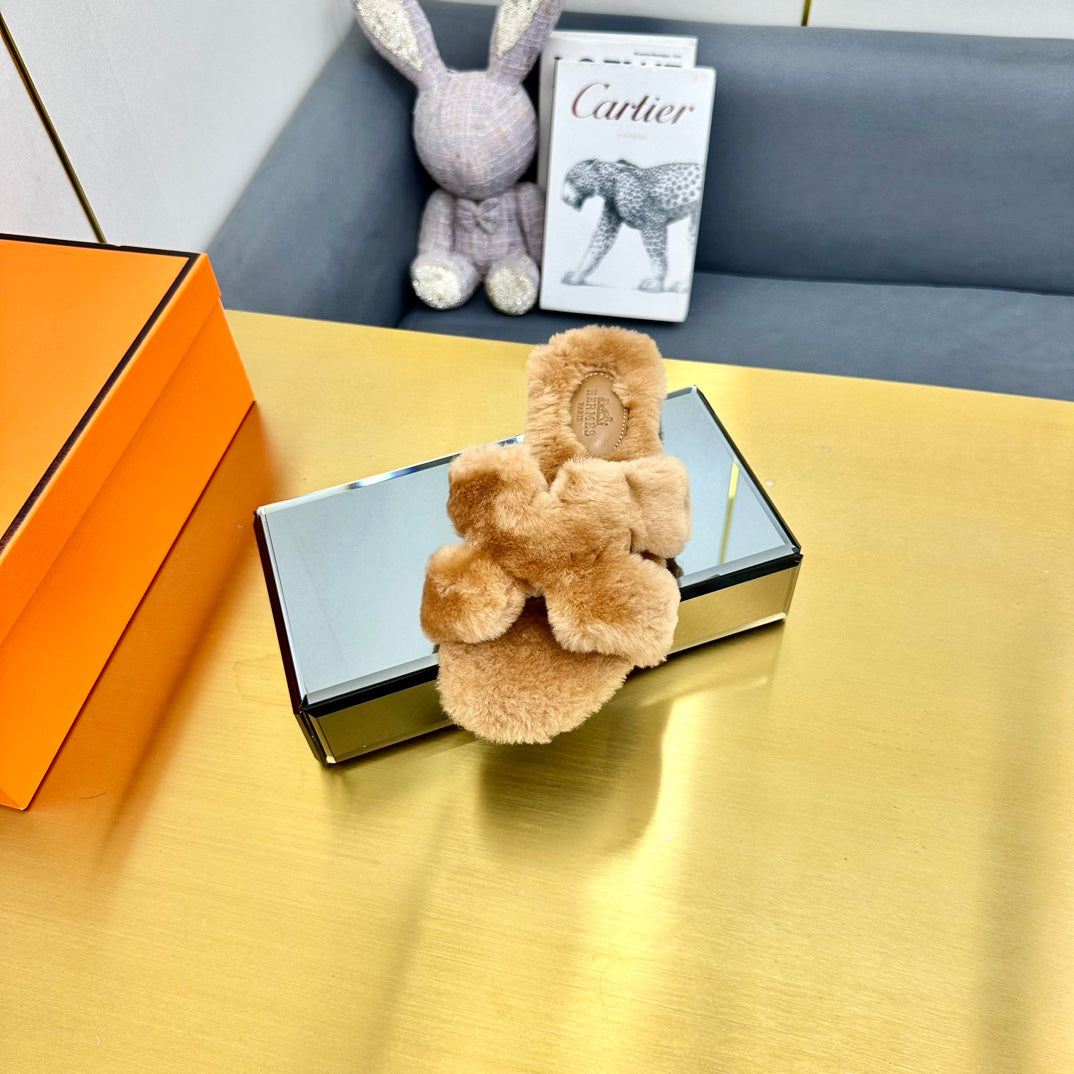 0RAN SHEARLING SANDALS PERU BROWN