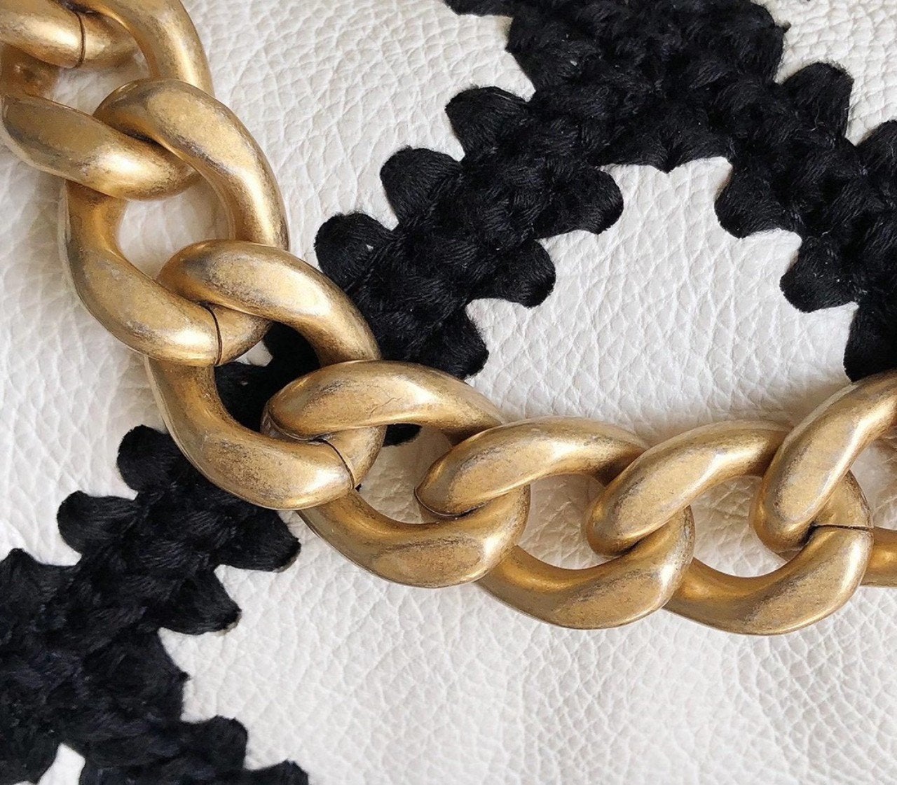 19 FLAP BAG 26 WHITE BLACK CALFSKIN