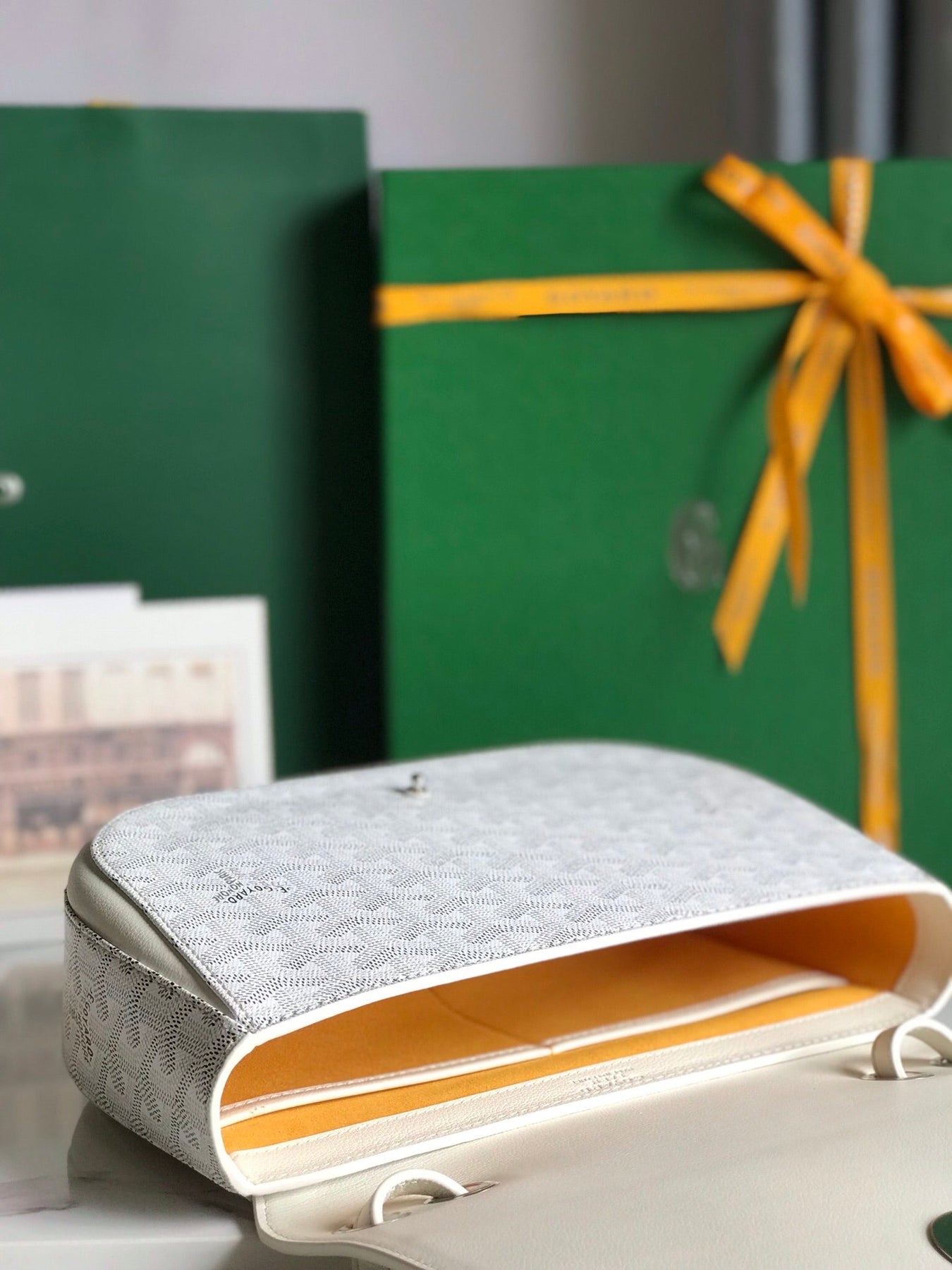 233 BAG 25 IN WHITE CALFKIN AND GOYARDINE CANVAS