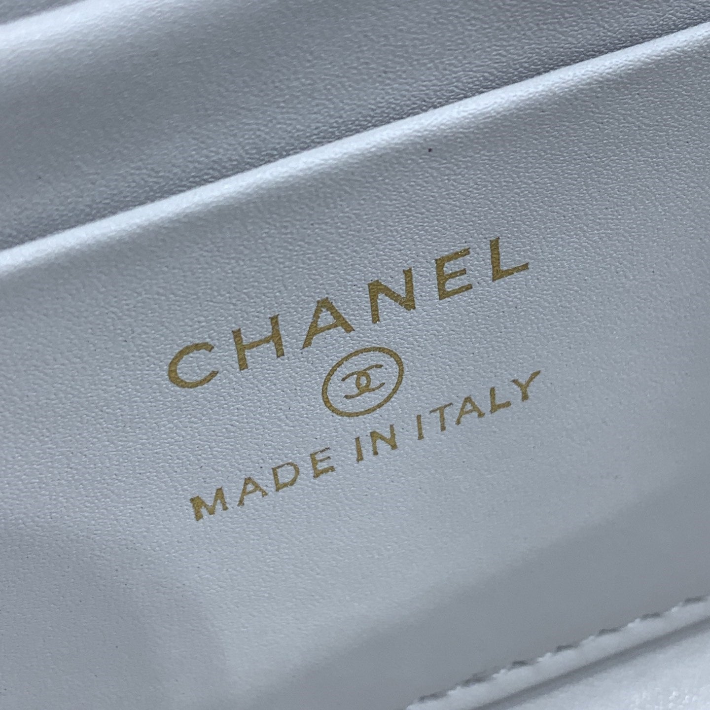 23P Flap Bag 19cm White Caviar Gold Hardware