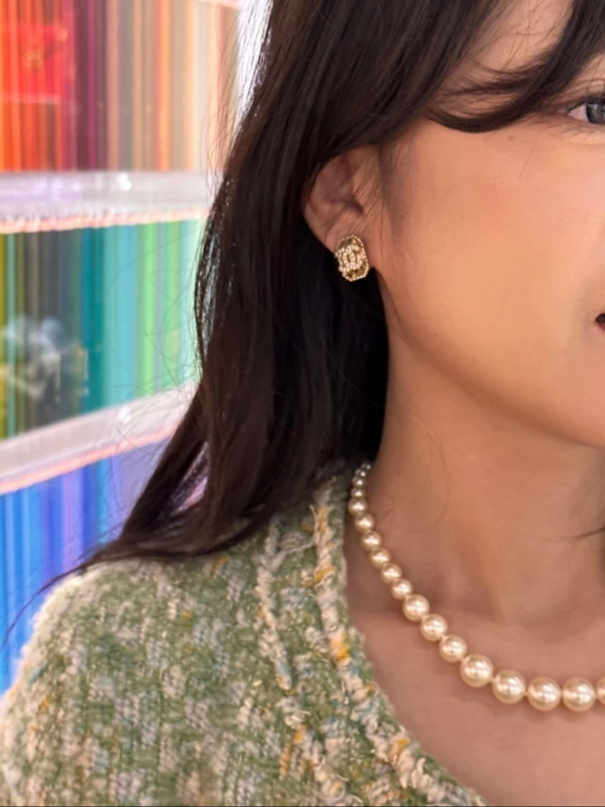 24C ROCK SUGAR DOUBLE C GOLD DIAMONDS EARRINGS