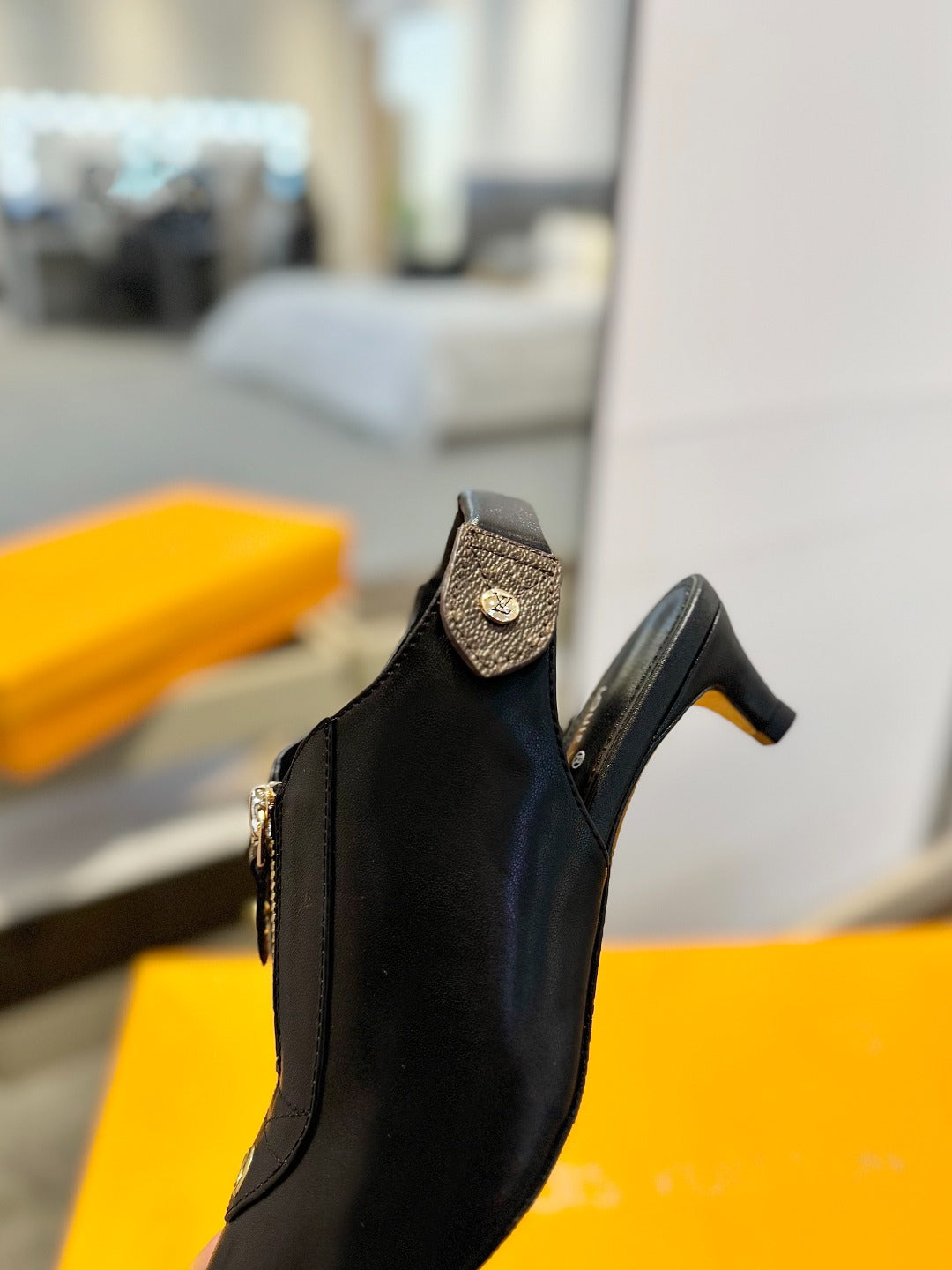 ALLURE HIGH 4.5 CM SLINGBACK IN BLACK MONOGRAM CALFSKIN