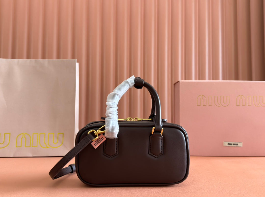 ARCADIE BAG 19 IN TAMARIND BROWN SHINY CALFSKIN
