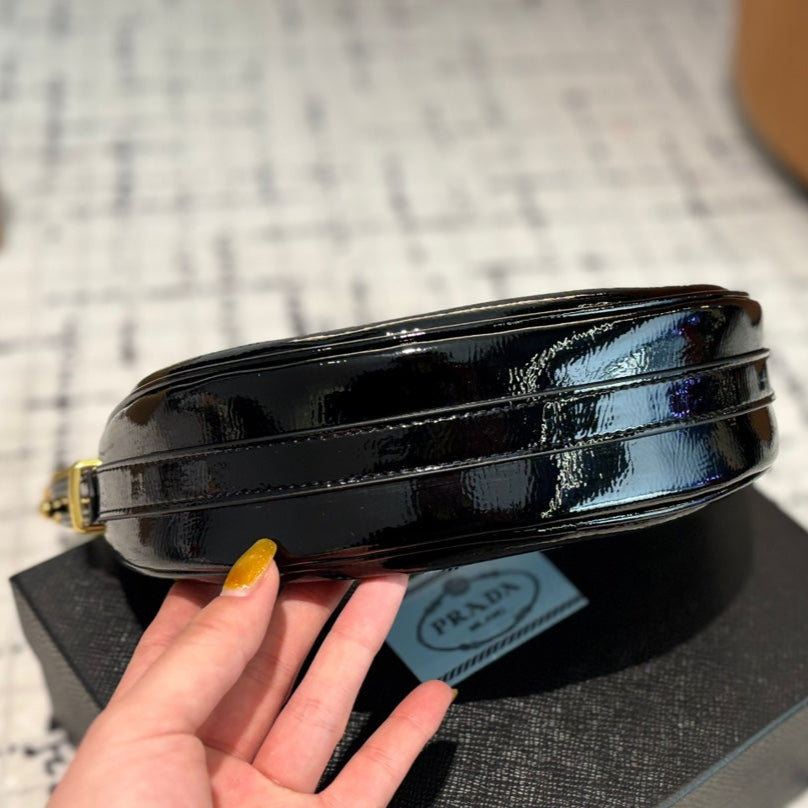 ARQUÉ SHOULDER BAG 20 IN PATENT BLACK NAPPA LEATHER GOLD HARDWARE