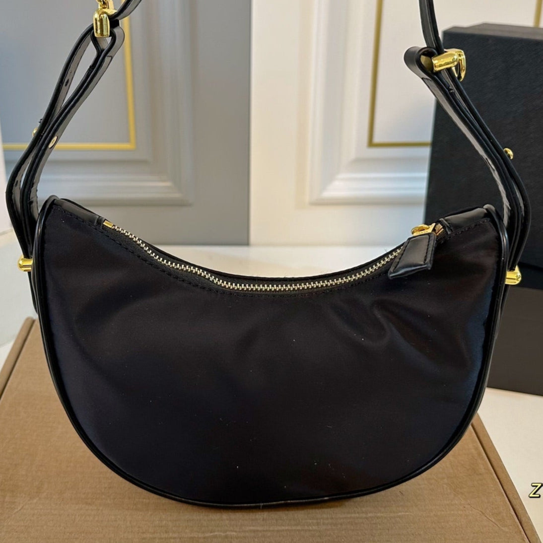ARQUÉ SHOULDER BAG 23 IN BLACK RE-NYLON GOLD HARDWARE