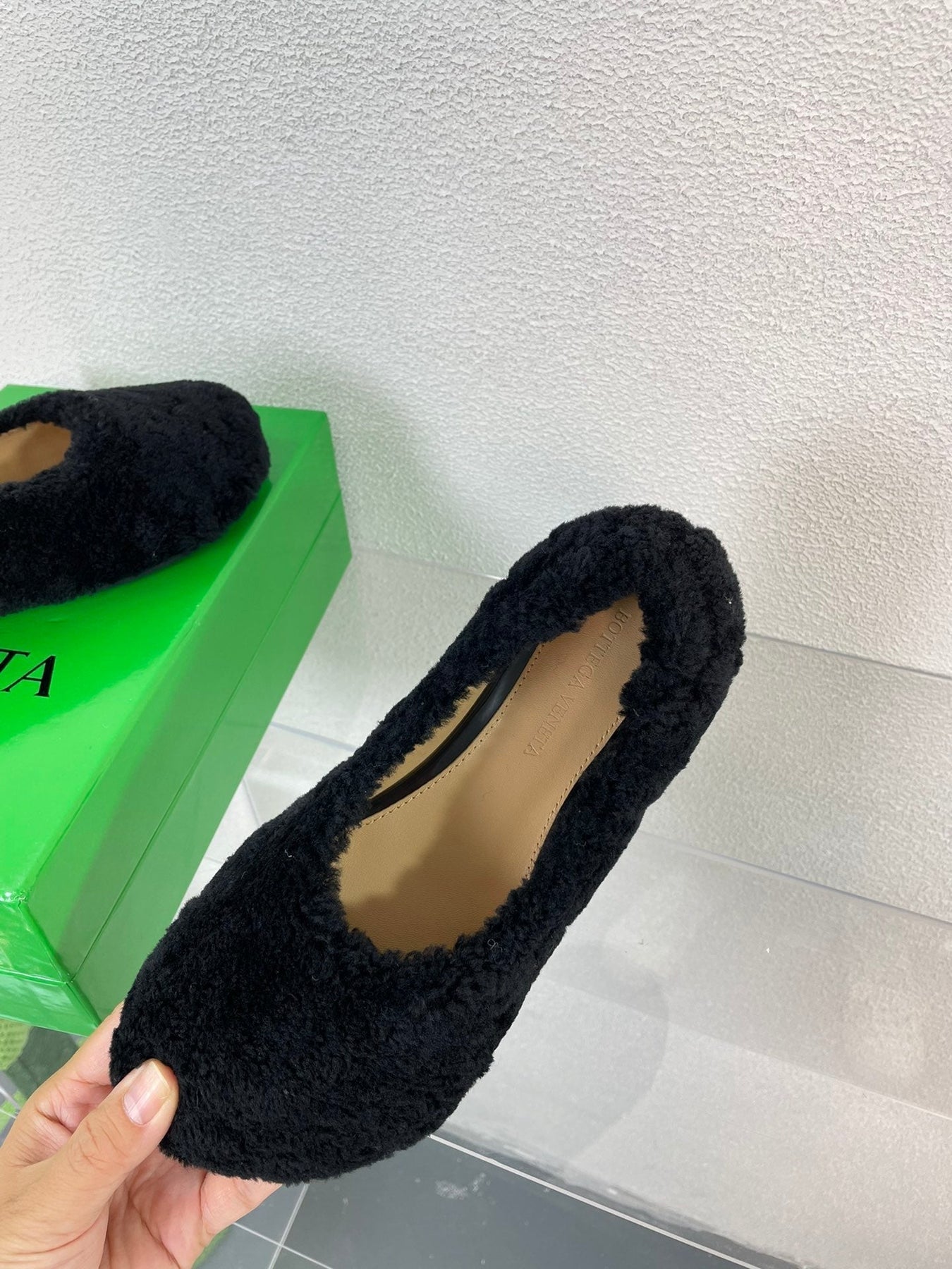 ATOMIC SHEARLING BALLERINA FLATS BLACK