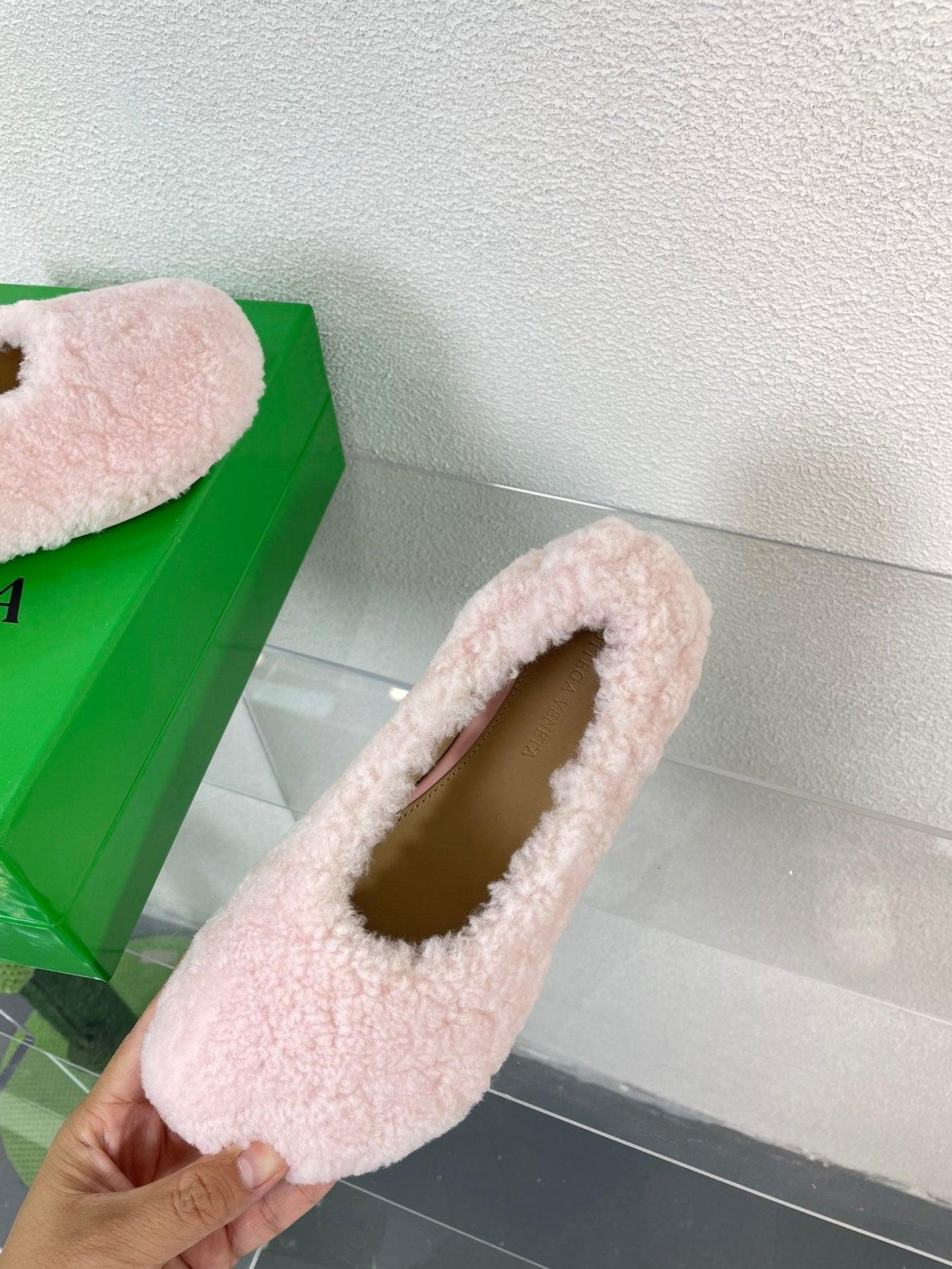 ATOMIC SHEARLING BALLERINA FLATS LIGHT PINK