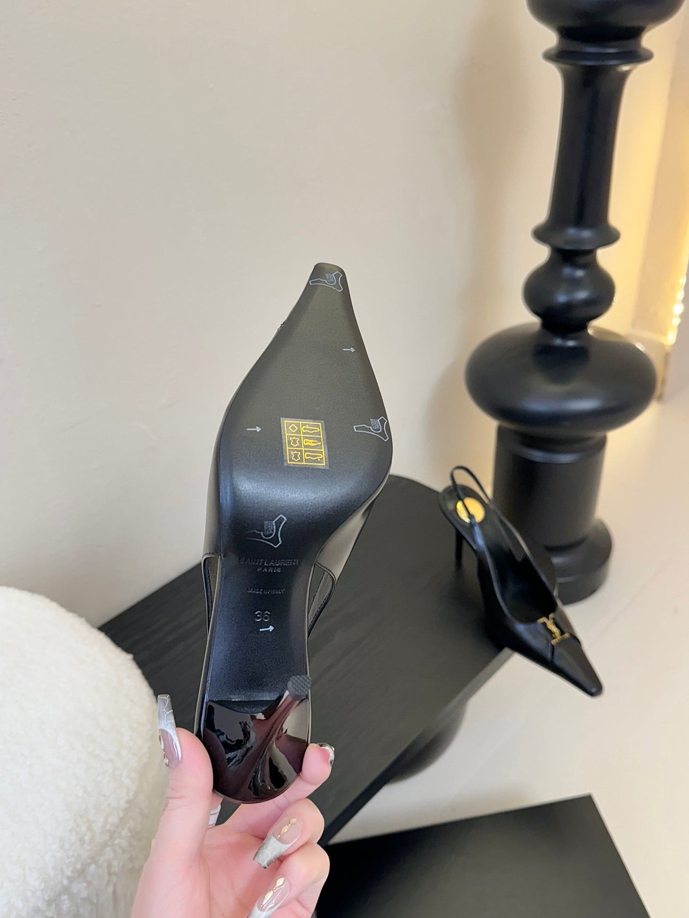 BABYLONE BRETEUIL SLINGBACK 85 MM PUMPS IN BLACK SMOOTH LEATHER