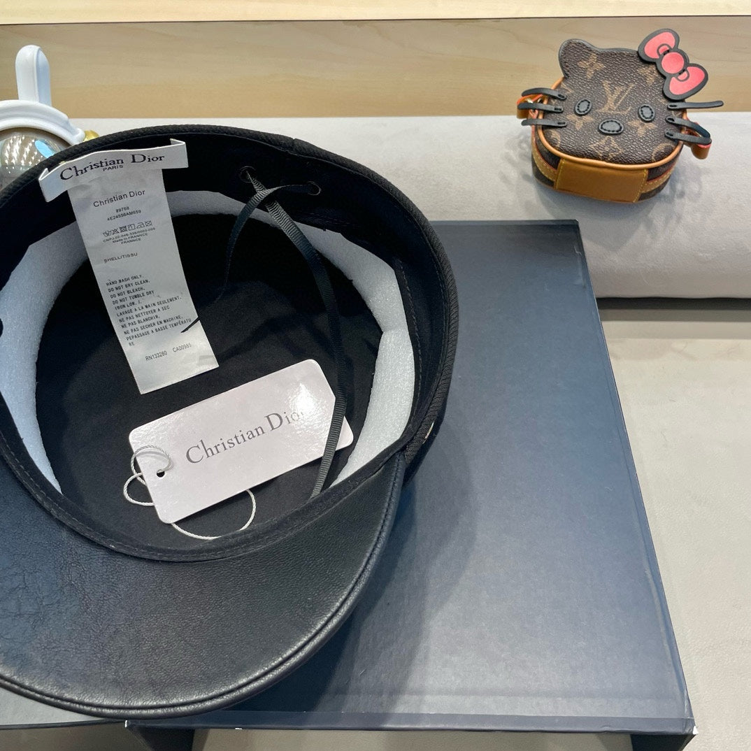 BAKER BOY HAT IN BLACK COTTON AND LEATHER 428246