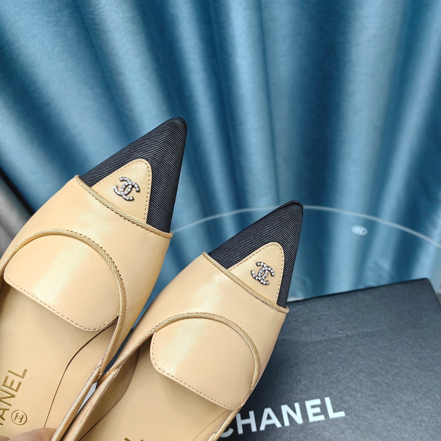 BALLET FLAT DARK CREAM MIX BLACK SHEEPSKIN POINTED TOE