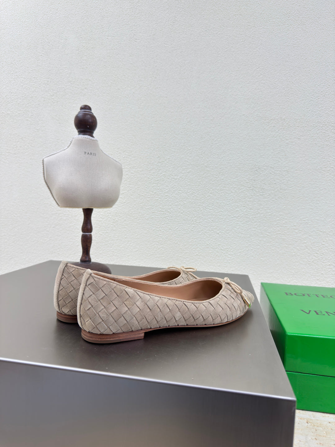 BALLET FLAT IN LIGHT BROWN INTRECCIATO SUEDE WITH BOW
