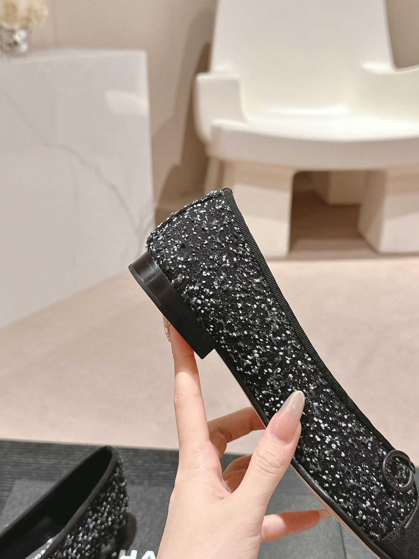 BALLET FLATS IN BLACK MIX WHITE TWEED AND SATIN