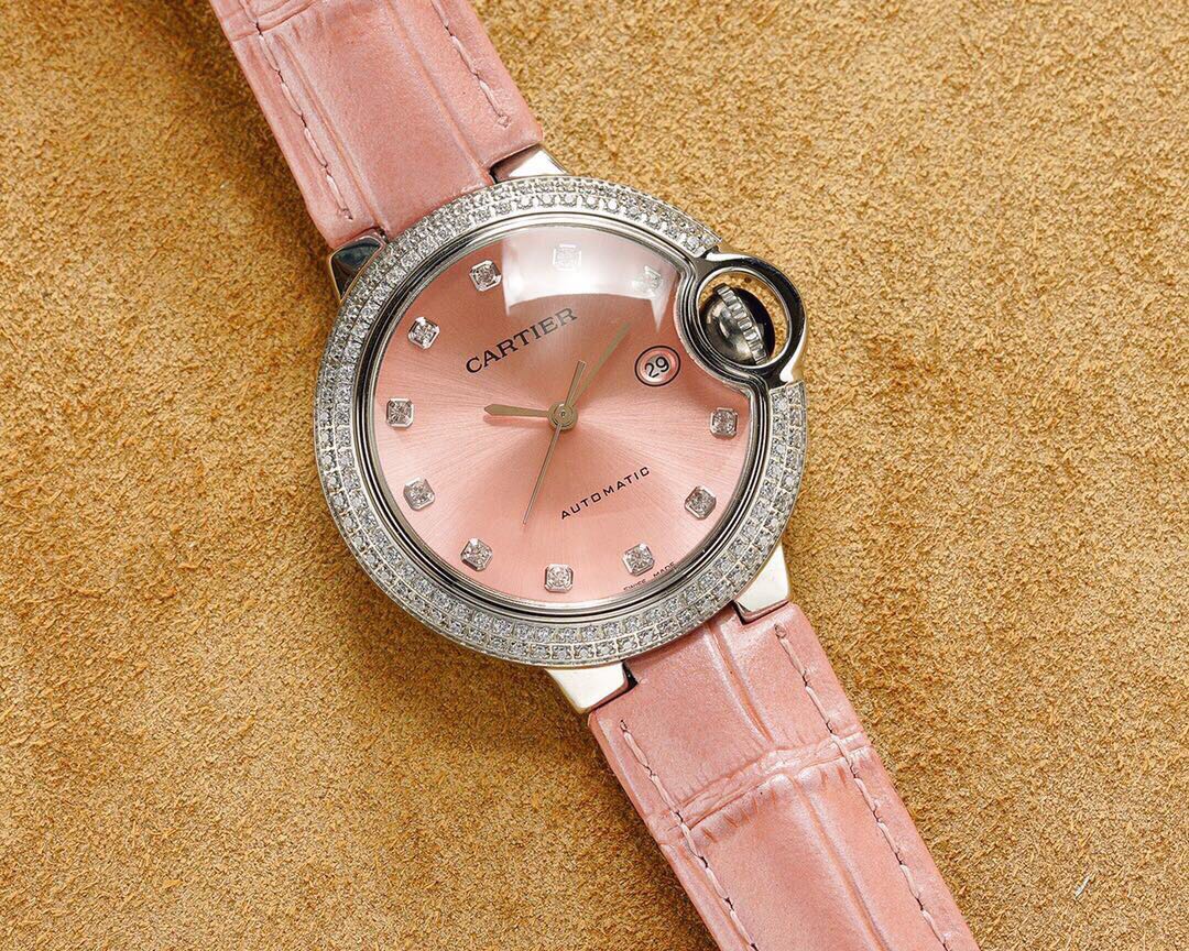 BALLON BLEU 33MM STEEL CASE DIAMOND NUMERALS LEATHER STRAP