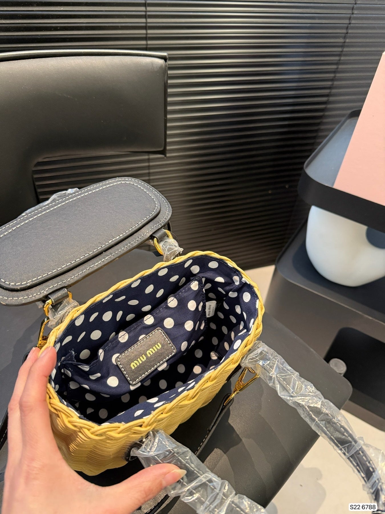 BASKET BAG 18 IN BROWN BEIGE WICKER AND BLACK CALFSKIN TRIM