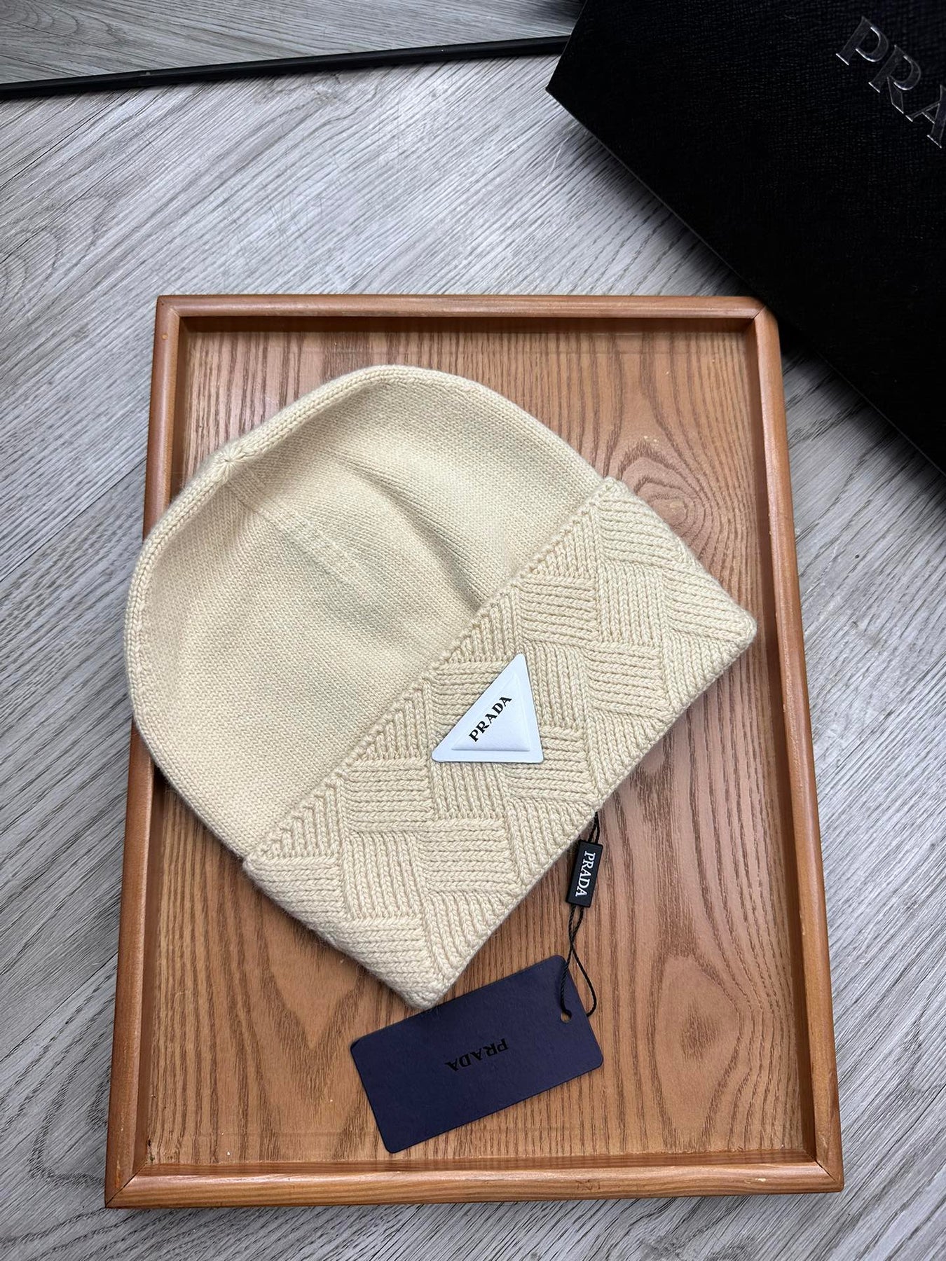 BEANIE HAT IN BISQUE BEIGE WOOL AND RABBIT FUR 342035