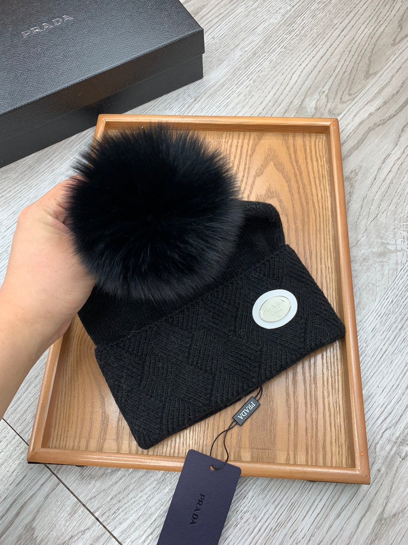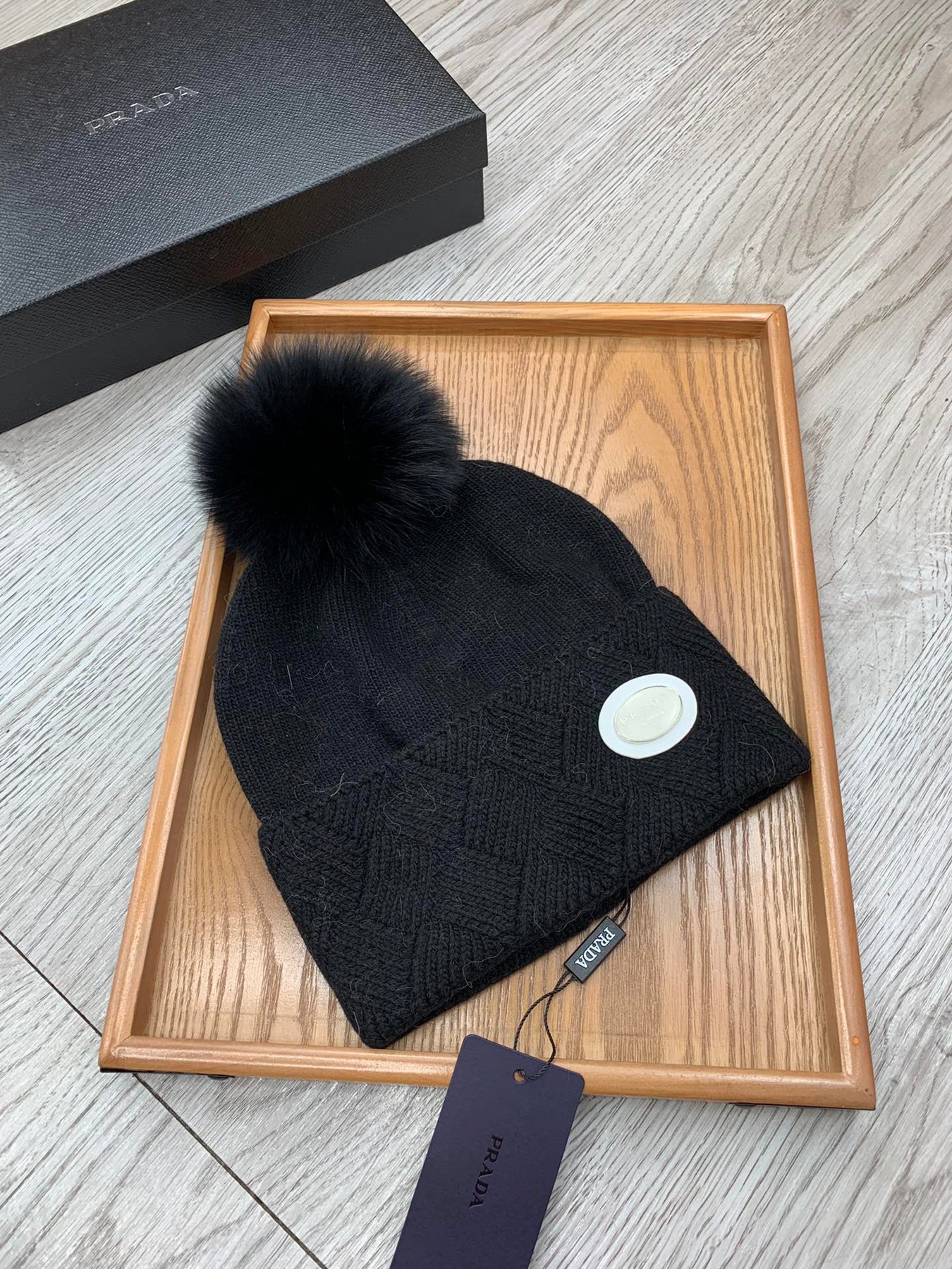 BEANIE HAT IN BLACK WOOL AND RABBIT FUR 346717