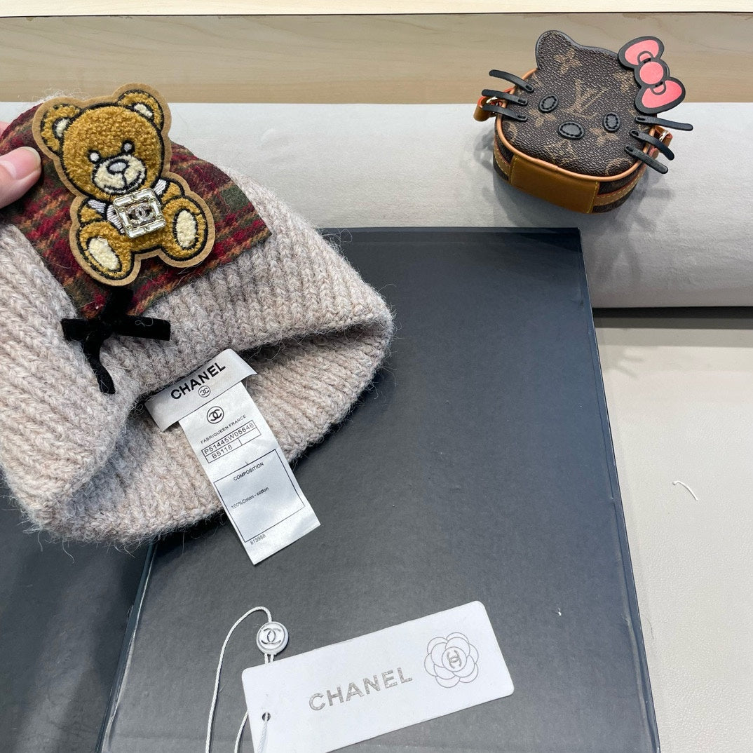 BEANIE HAT IN CAMEL BEIGE WOOL WITH BOW 421255
