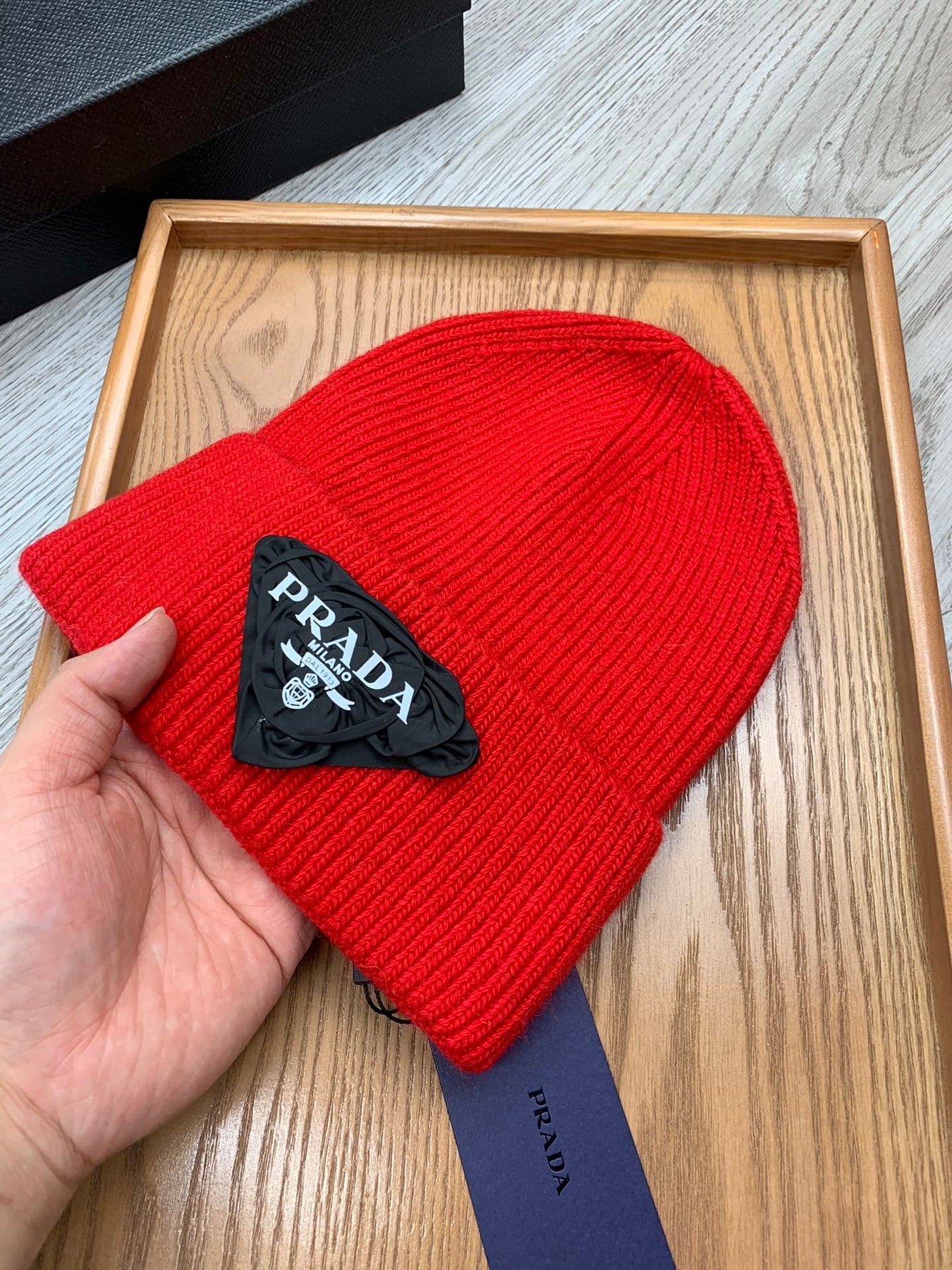 BEANIE HAT IN CHERRY RED WOOL 431358
