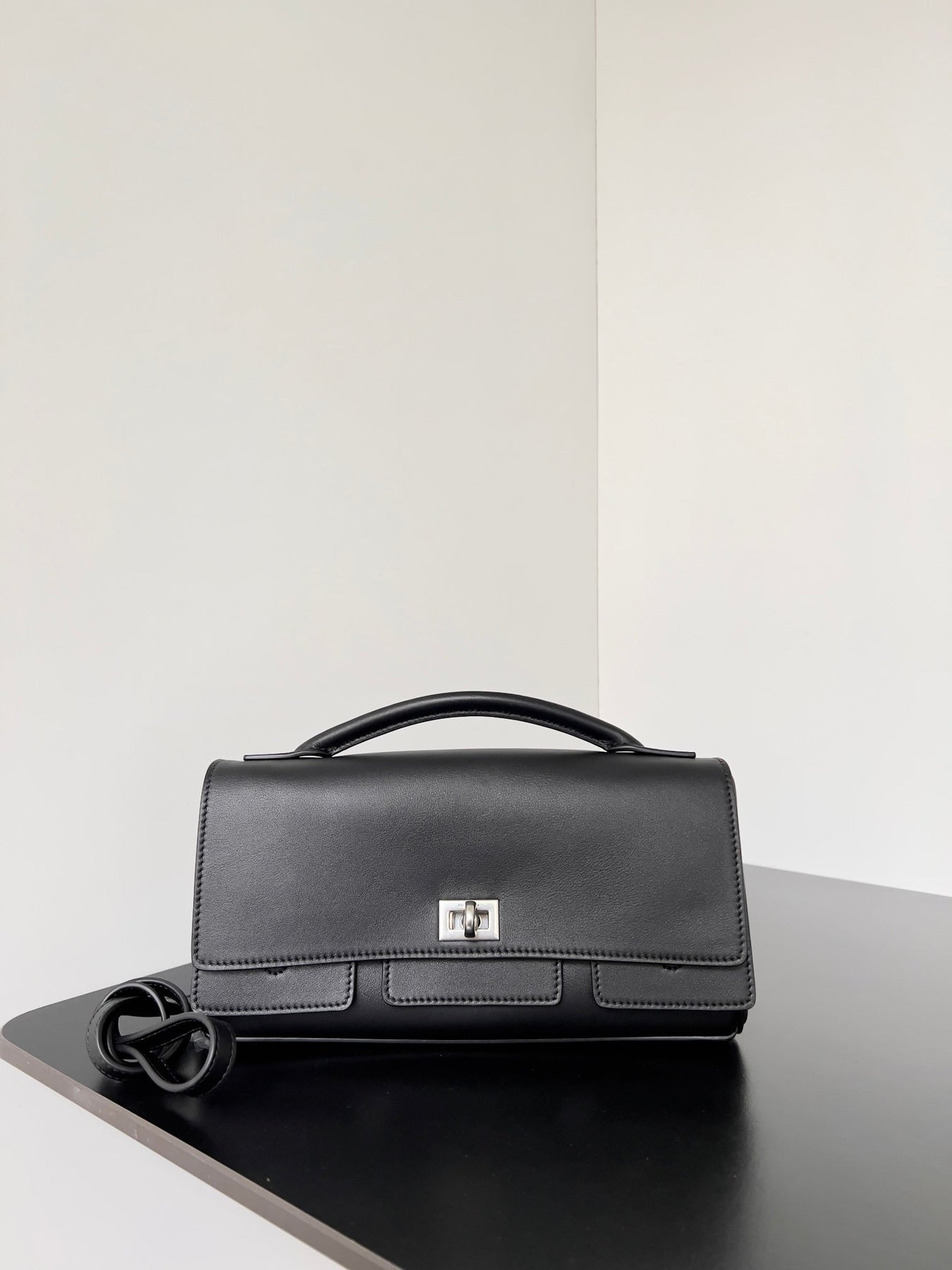 BEL AIR CLUTCH 27 IN BLACK NAPPA LAMBSKIN SILVER HARDWARE