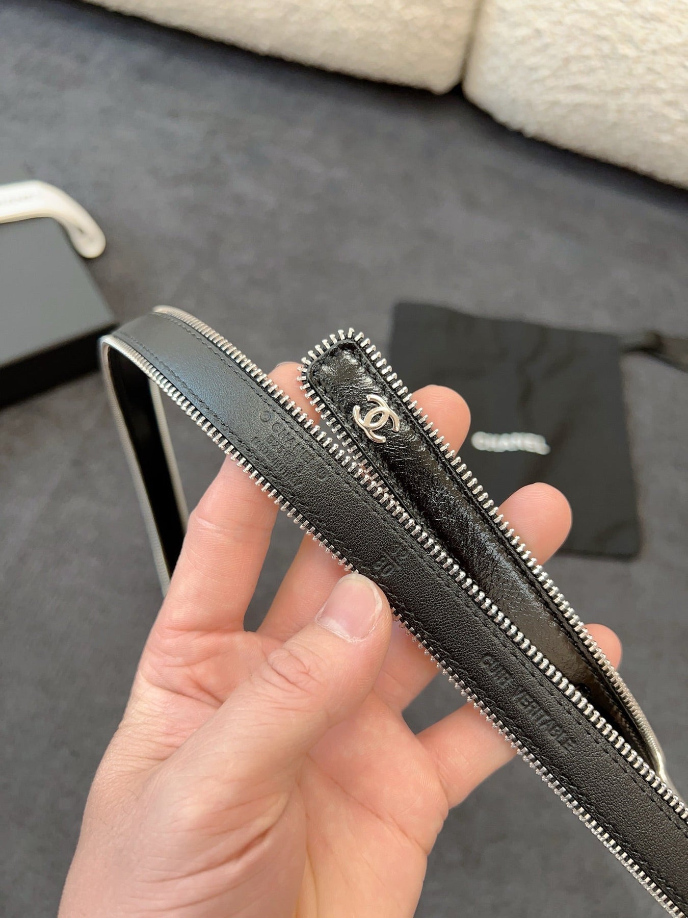 BELT 20MM IN BLACK CALFSKIN WITH INTERWOVEN CHAIN BUCKLE ZIPPER IN TRIM