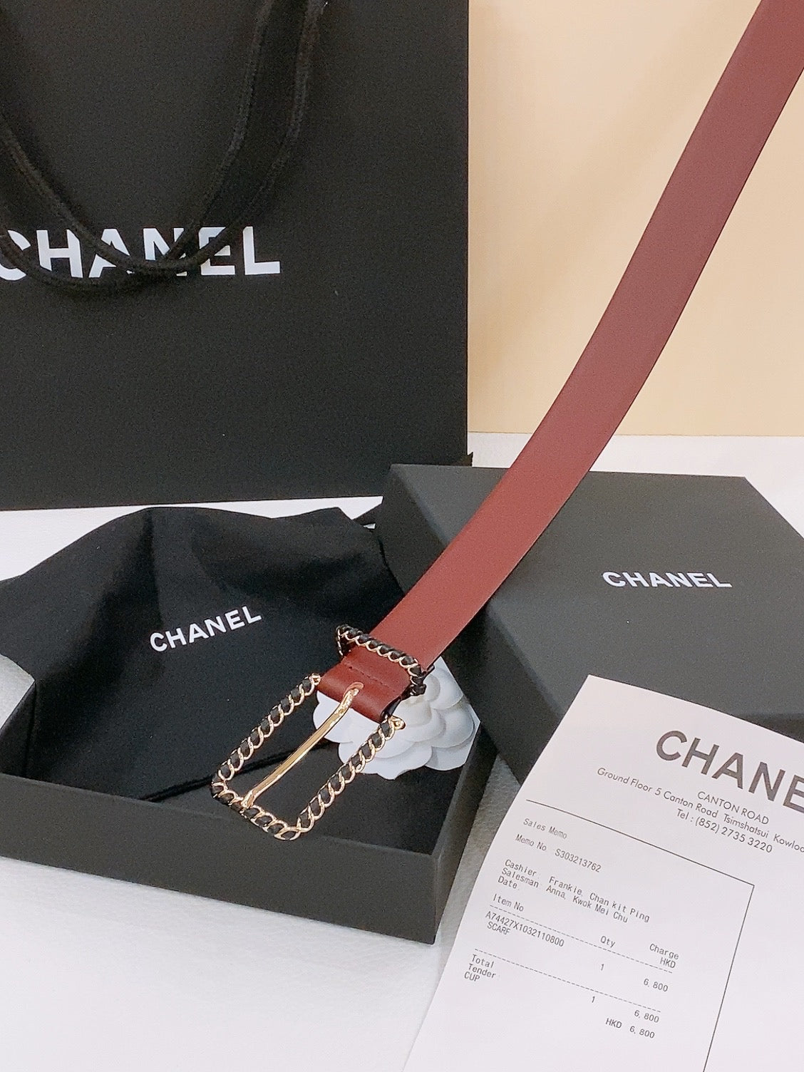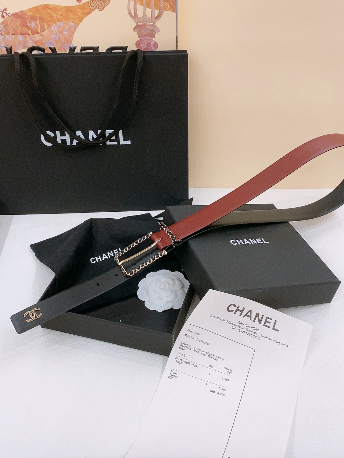 BELT 30MM IN BLACK AND RED CALFSKIN WITH INTERWOVEN GOLD CHAIN BUCKLE