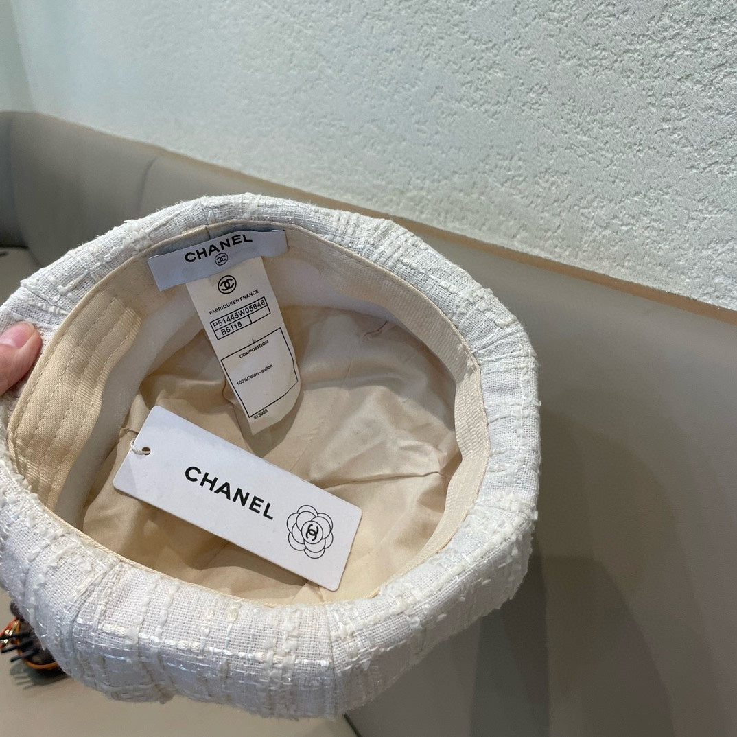 BERET HAT IN WHITE WOOL TWEED 422553