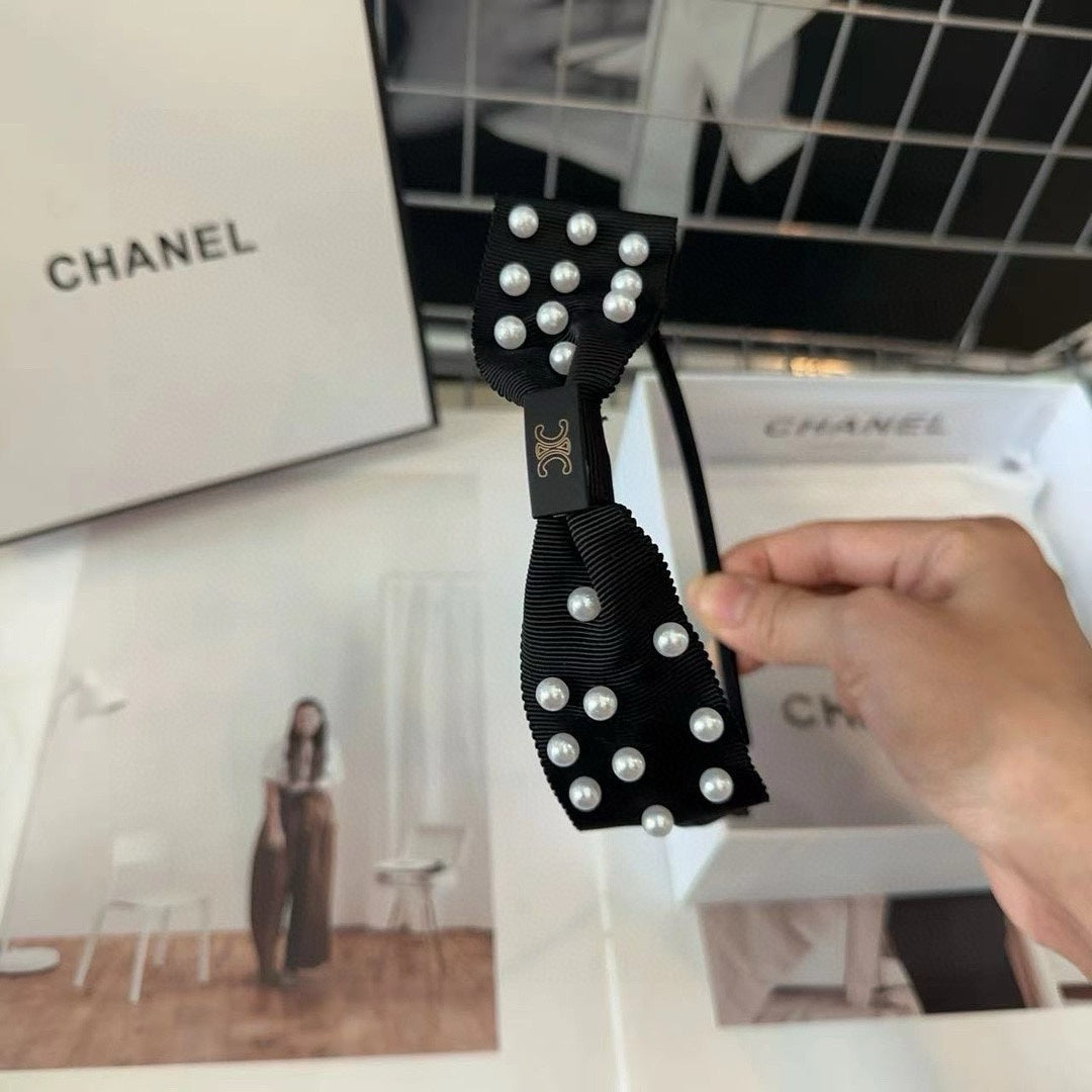 BLACK FABRIC WITH PEARLS HAIRBAND 415960
