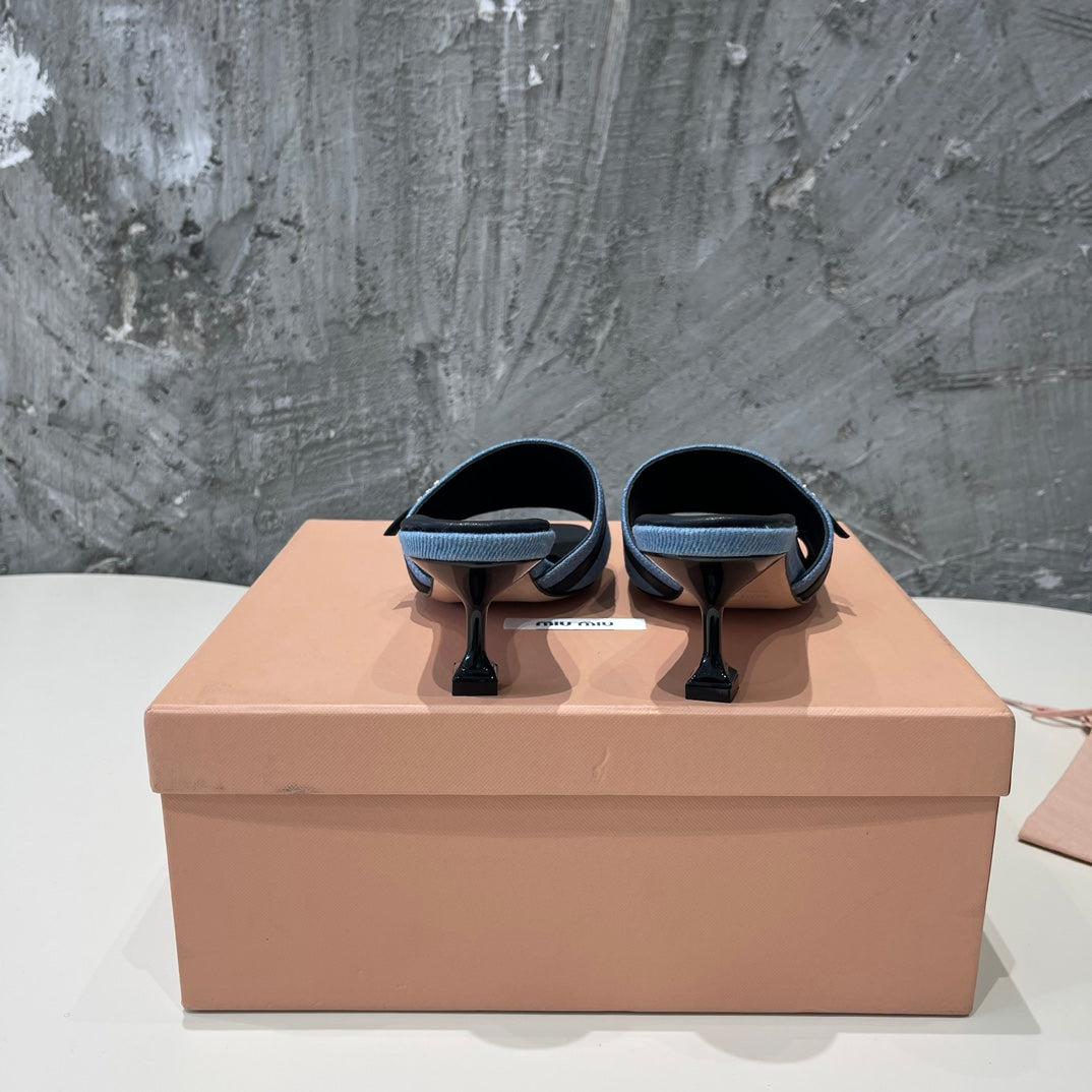 BLACK HIGH HEEL WITH BLUE STRAPS AND BLACK BELT