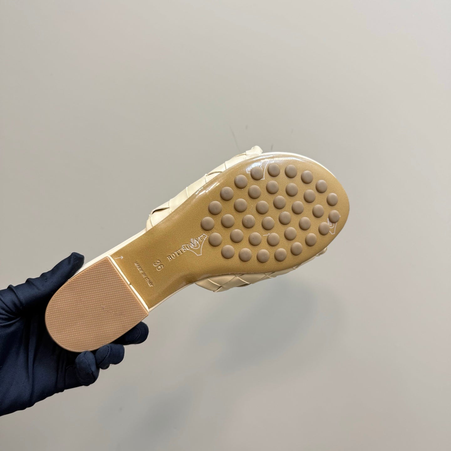 BLINK FLAT MULE IN PALE YELLOW INTRECCIATO LEATHER