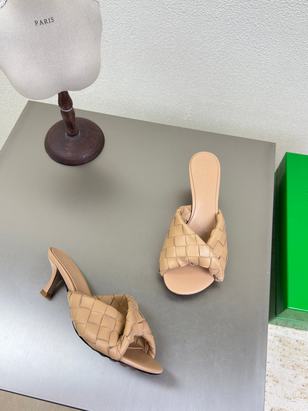 BLINK HIGH 5 CM MULE IN BUFF BEIGE INTRECCIATO LEATHER