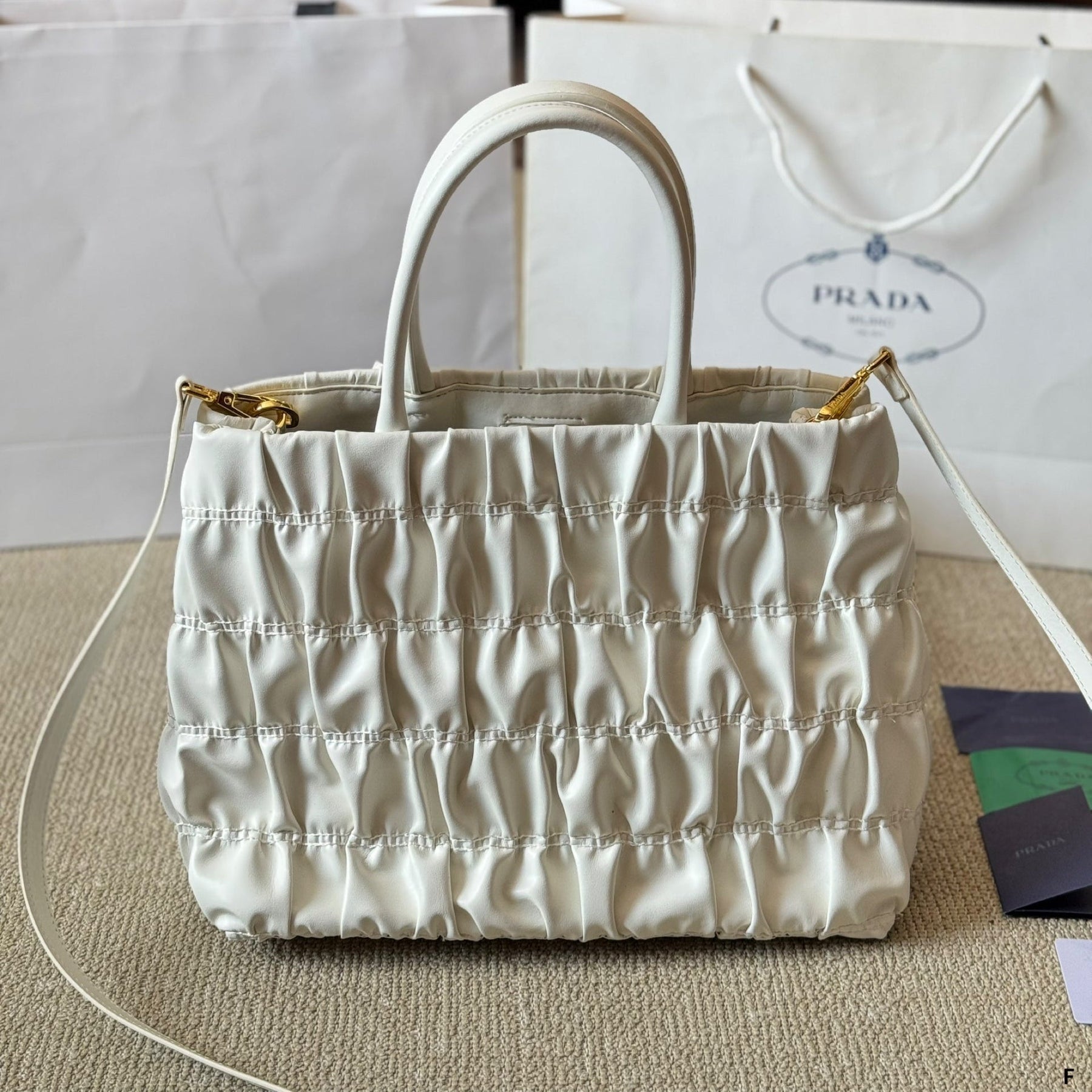 BOW DETAIL RUCHED TOP HANDLE BAG 28 IN WHITE SAFFIANO LEATHER