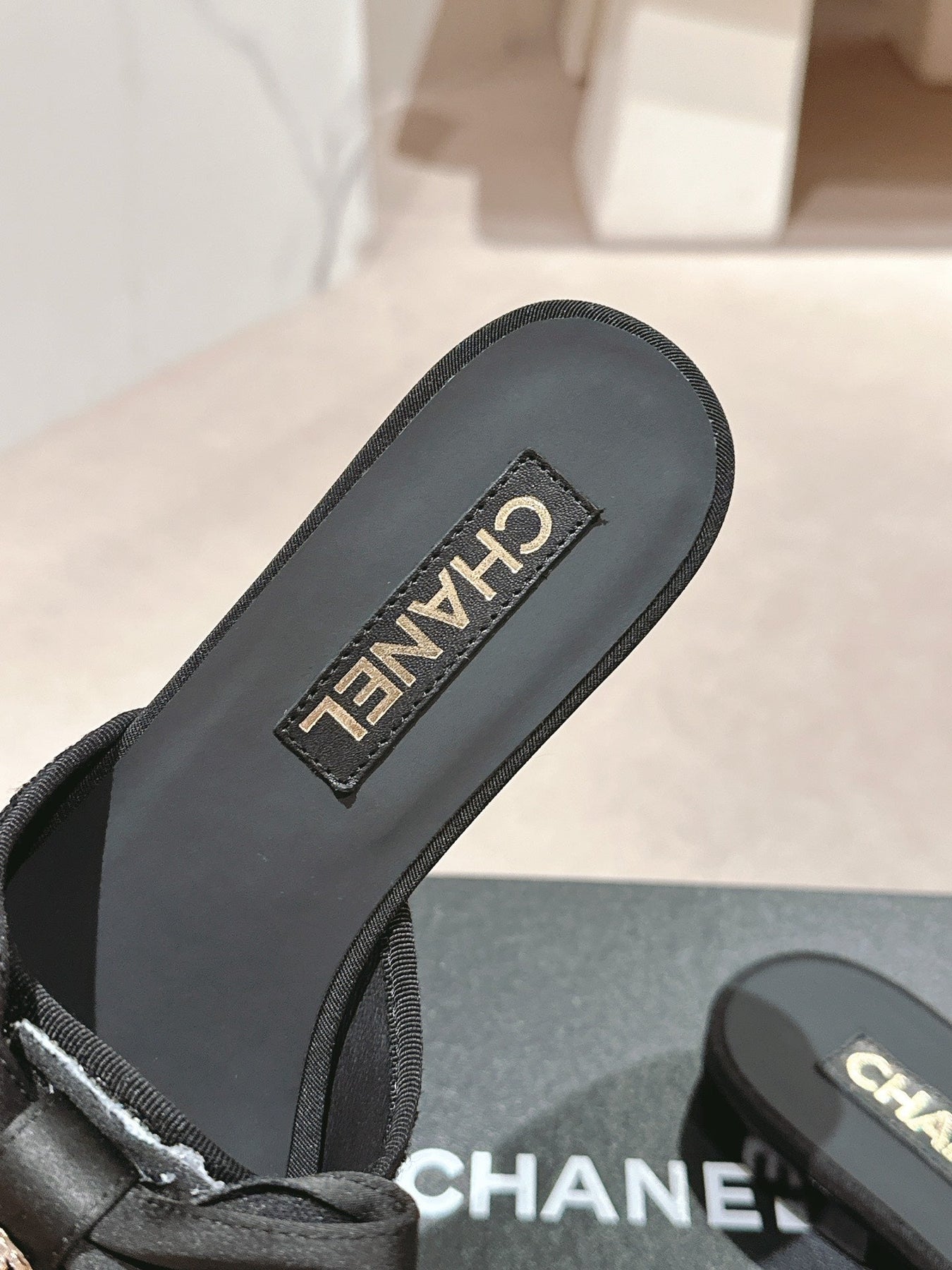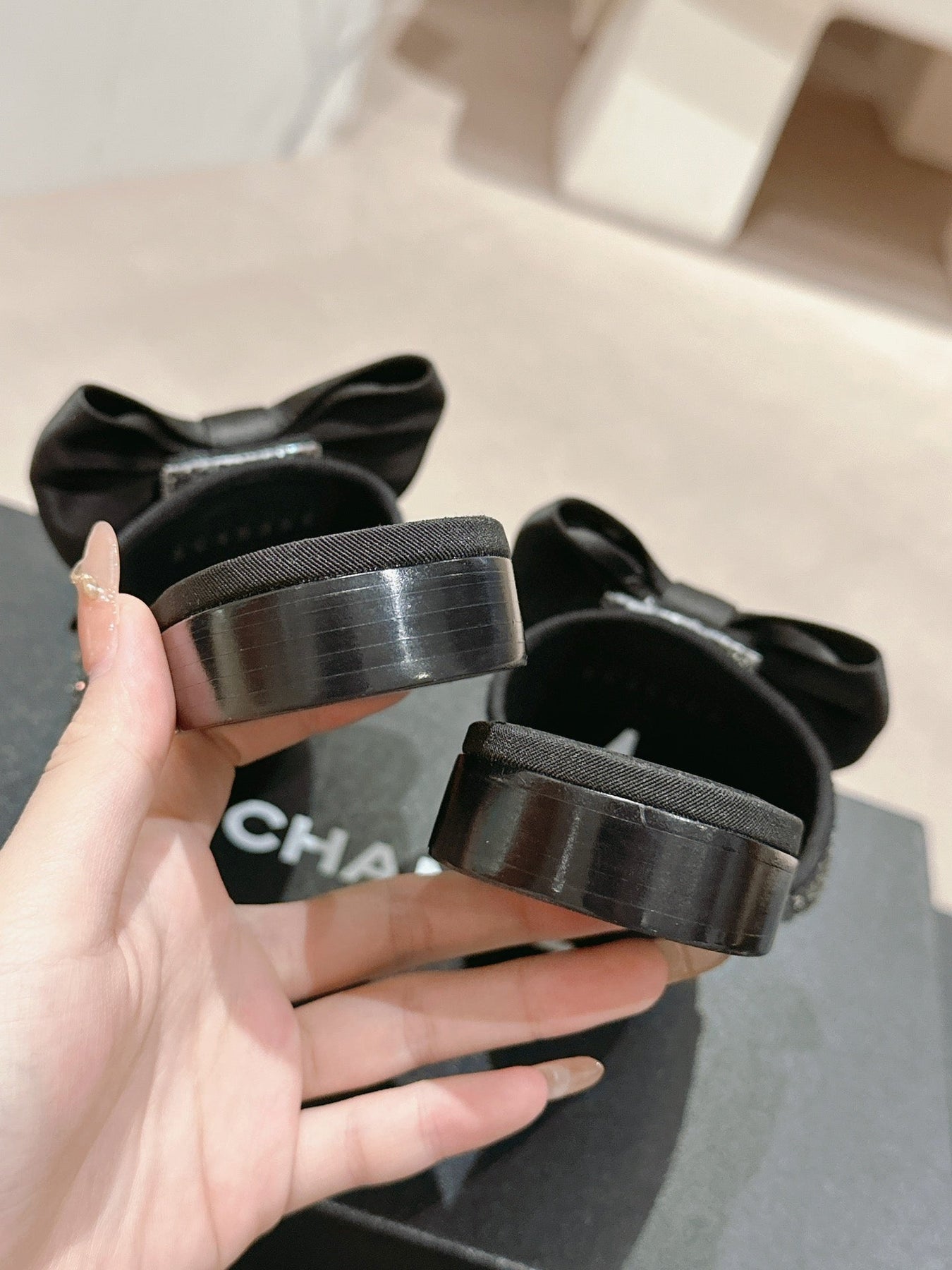 BOW LADY SLIPPERS BLACK LAMBSKIN WITH RHINESTONES