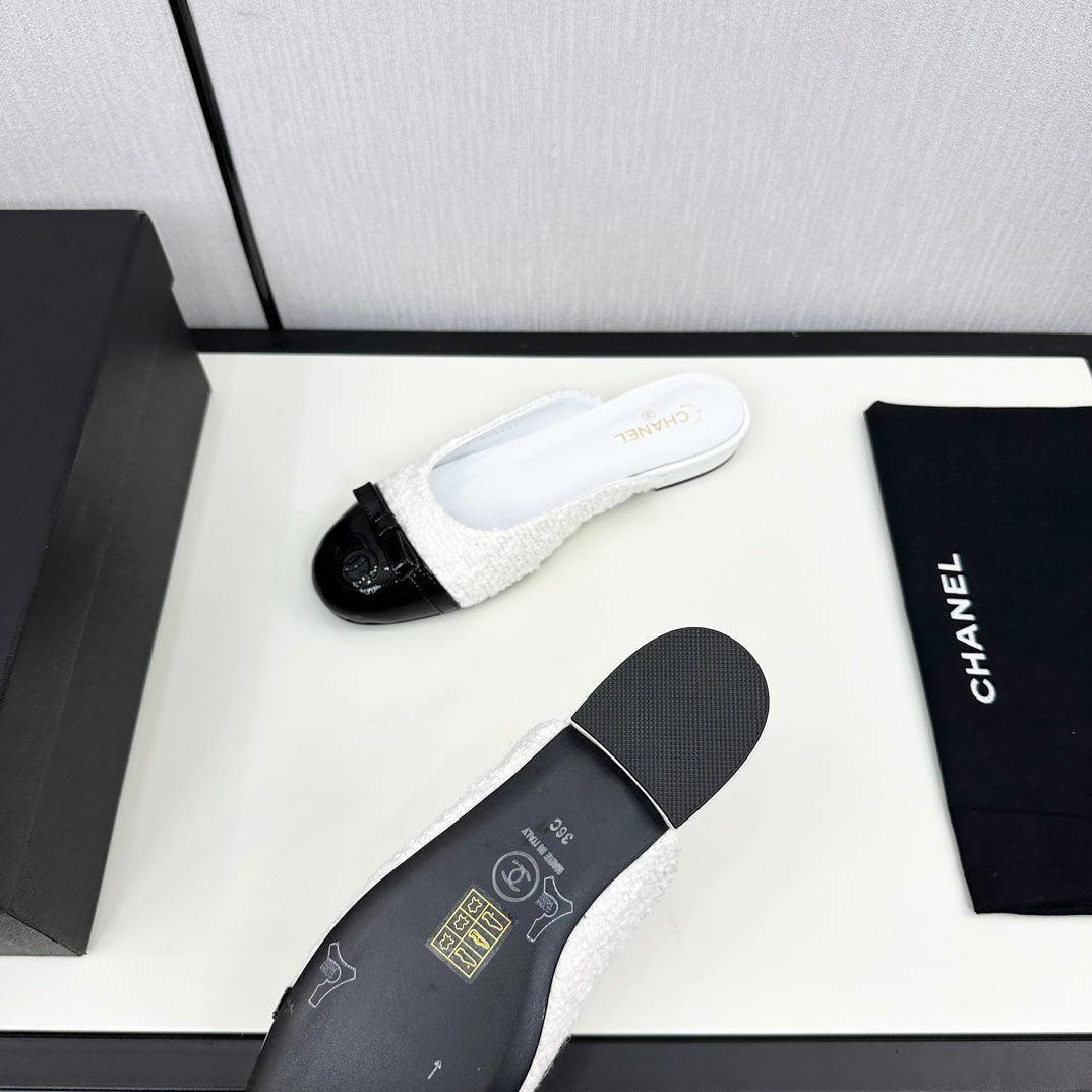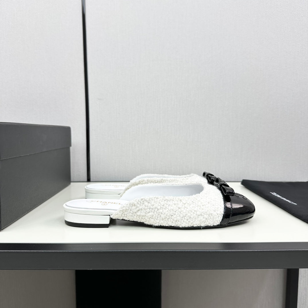 BOW MULE IN WHITE FUR AND BLACK CALFSKIN