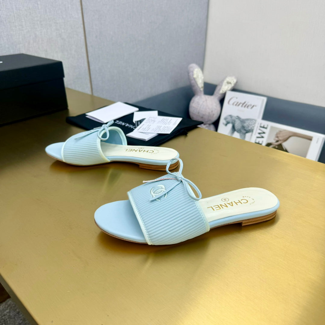 BOW SLIPPERS IN LIGHT BLUE LAMBSKIN