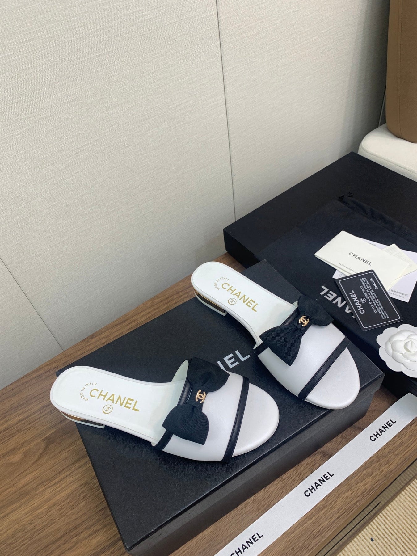 BOW SLIPPERS IN WHITE LAMBSKIN