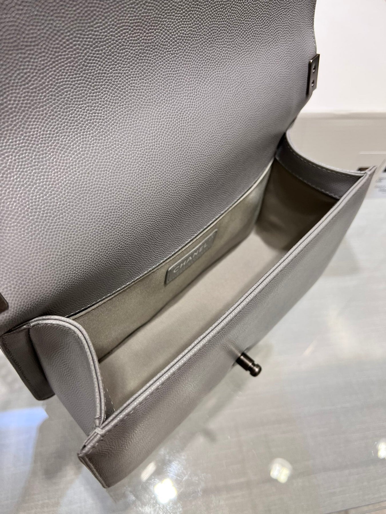 BOY BAG MEDIUM 25 GREY CAVIAR RUTHENIUM HARDWARE