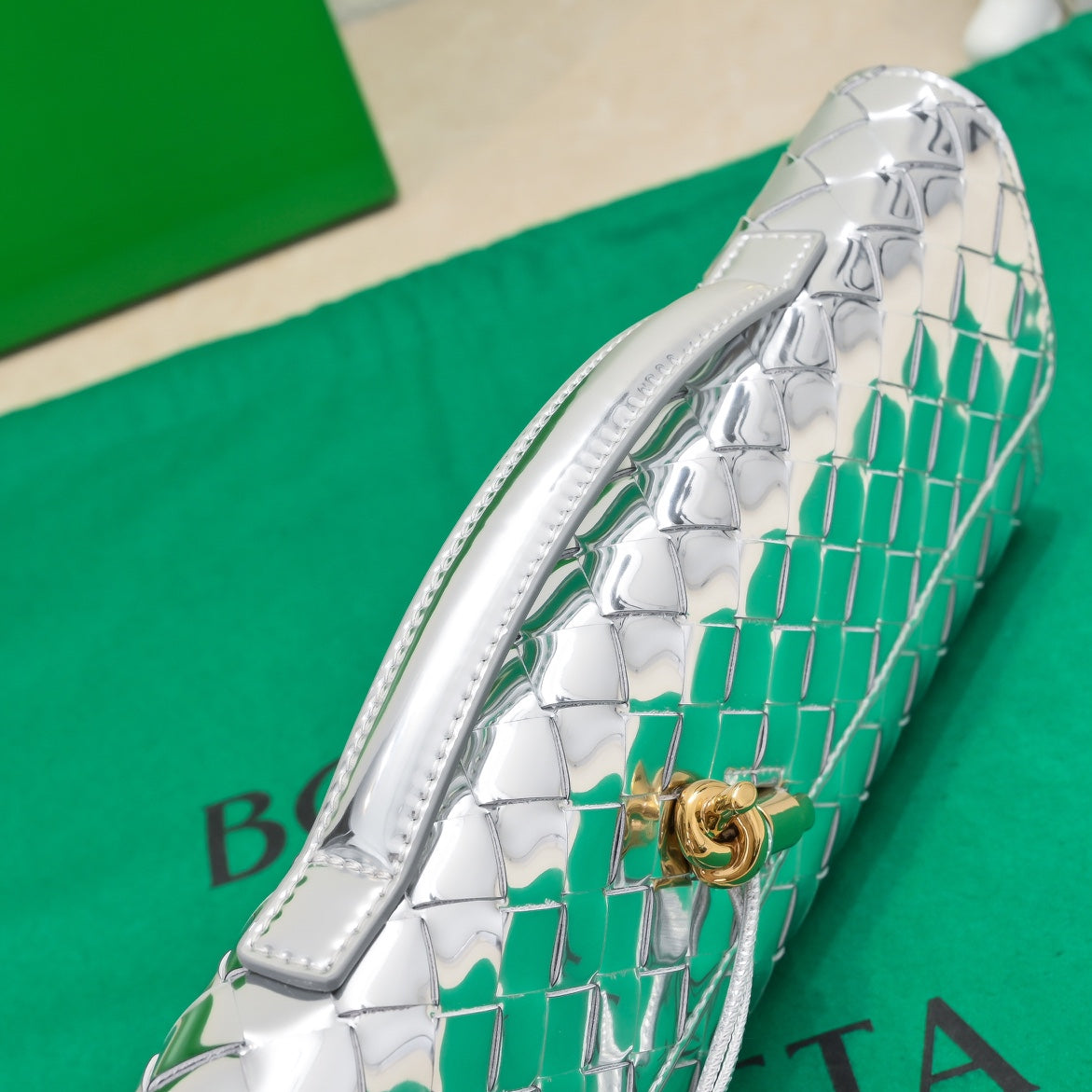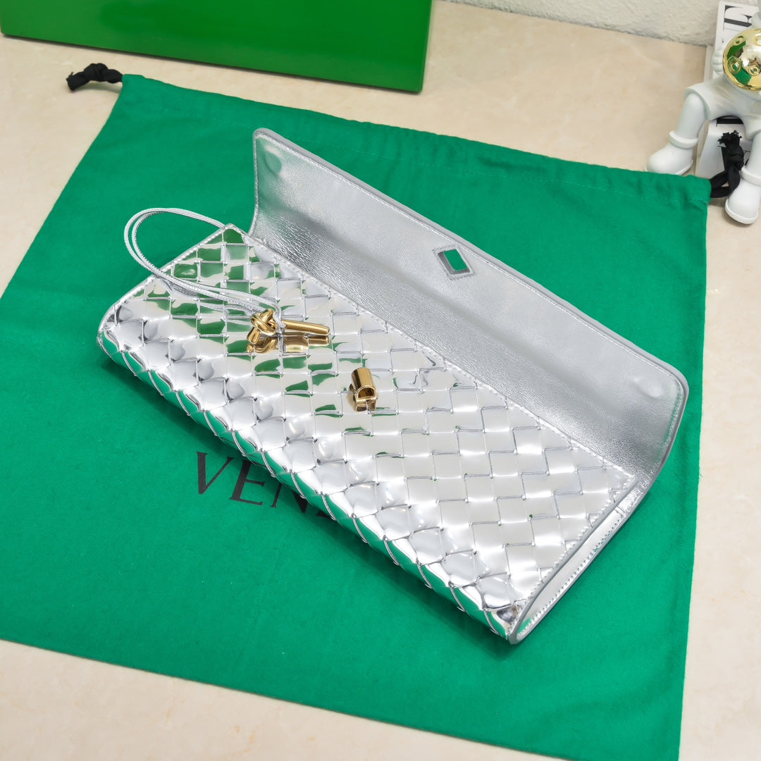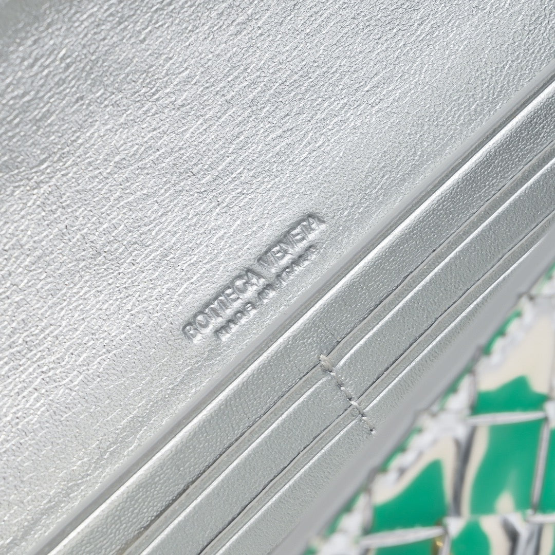 BV Long Clutch Andiamo 31 Silver Metalic Leather Ghw