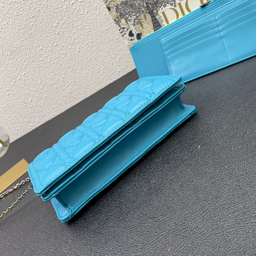 CARO SLIM POUCH 21 BAG IN SKY BLUE CALFSKIN