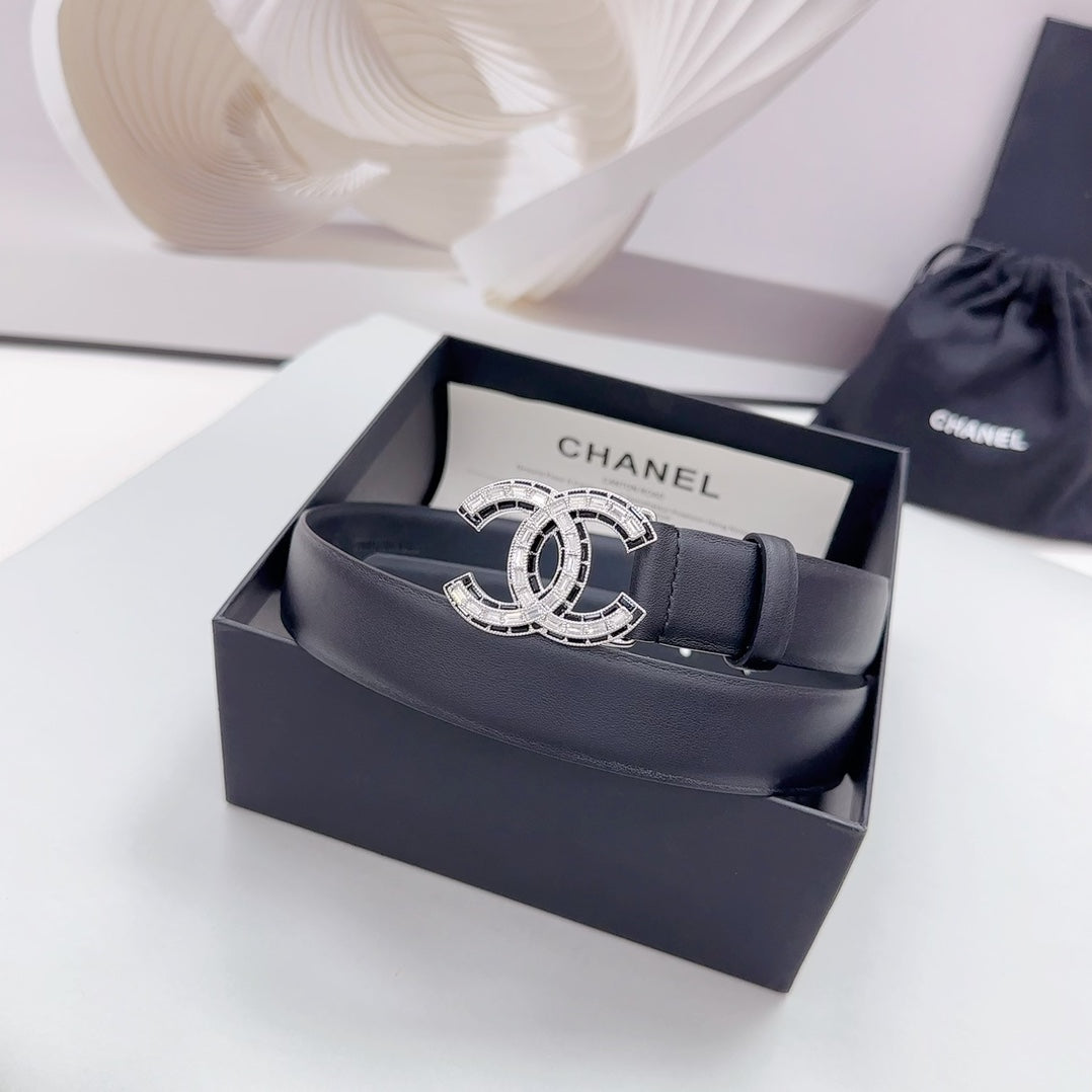 CC 30MM BELT IN BLACK CALFSKIN METAL HARDWARE