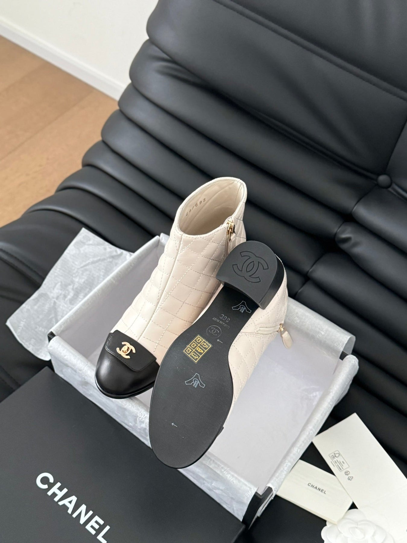 CC BALLET SHORT BOOTS 65 MM IN WHITE MIX BLACK QUILTED PATTERN LAMBSKIN