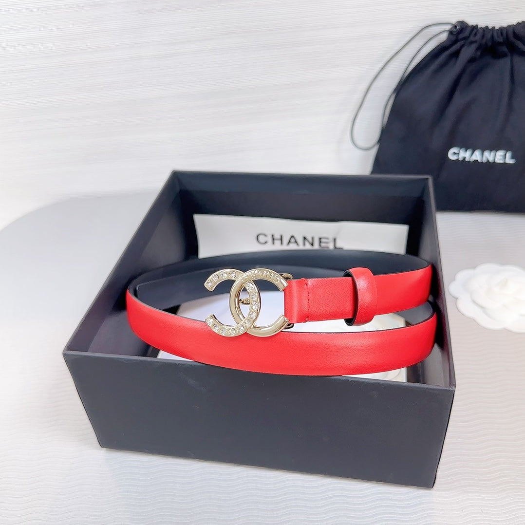 CC BELT 20 MM IN CRIMSON RED SMOOTH CALFSKIN GOLD HARDWARE ATTACH RHINSTONE