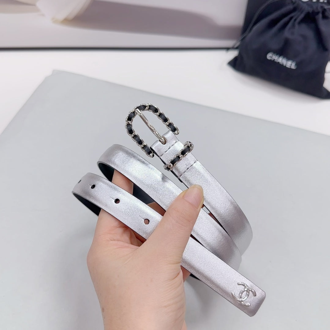CC BELT 20 MM IN SILVER MIX BLACK CALFSKIN SILVER HARDWARE