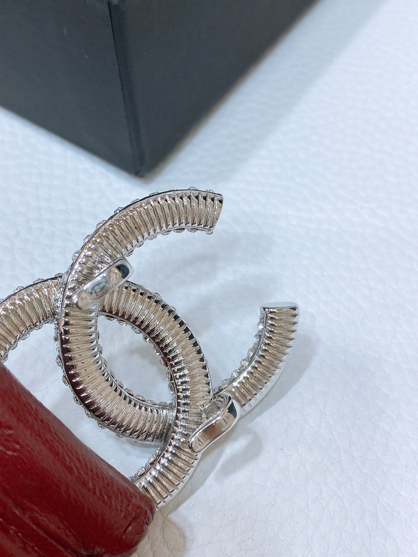 CC ELASTIC BELT 30MM IN WINE RED CALFSKIN SILVER HARDWARE WITH RHINSTONES