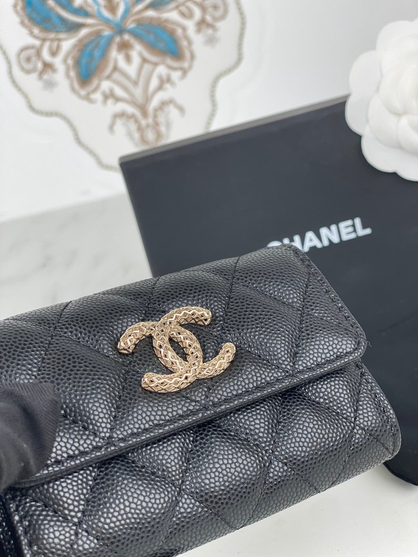 CC FLAP CARD HOLDER 11 BLACK GRAINED CALFSKIN GOLD ICON