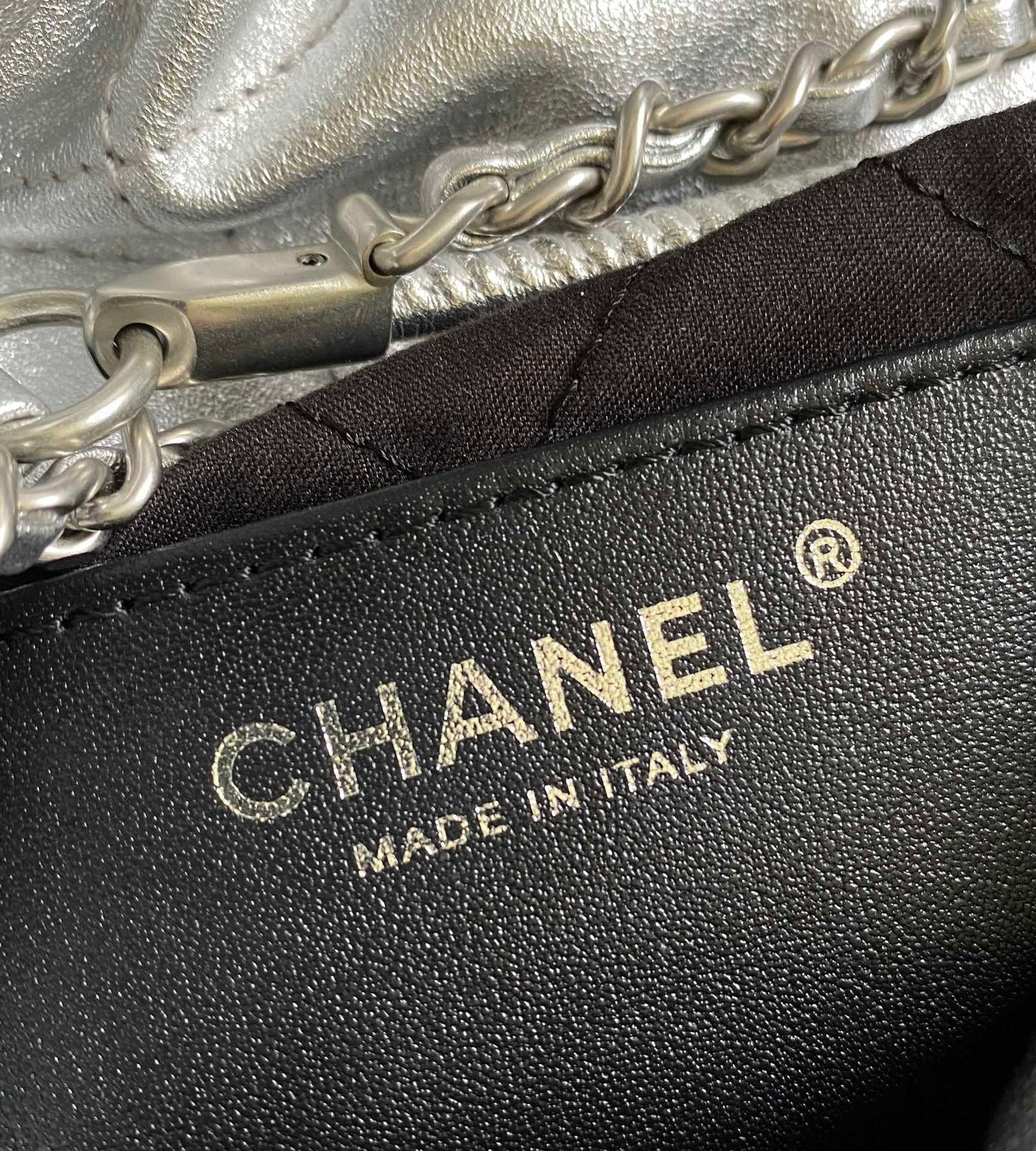 CC HOBO MINI 20CM SILVER LAMBSKIN
