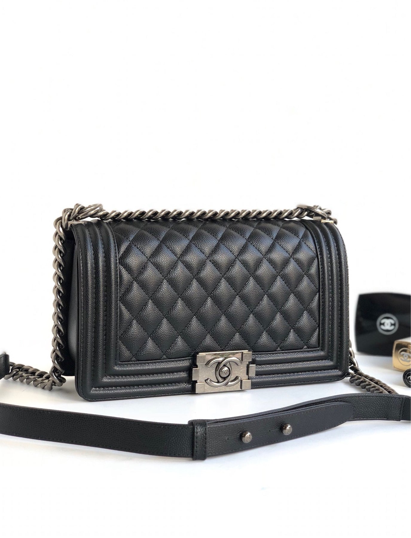 CC MEDIUM 25 BOY BAG IN BLACK LAMBSKIN SILVER HARDWARE