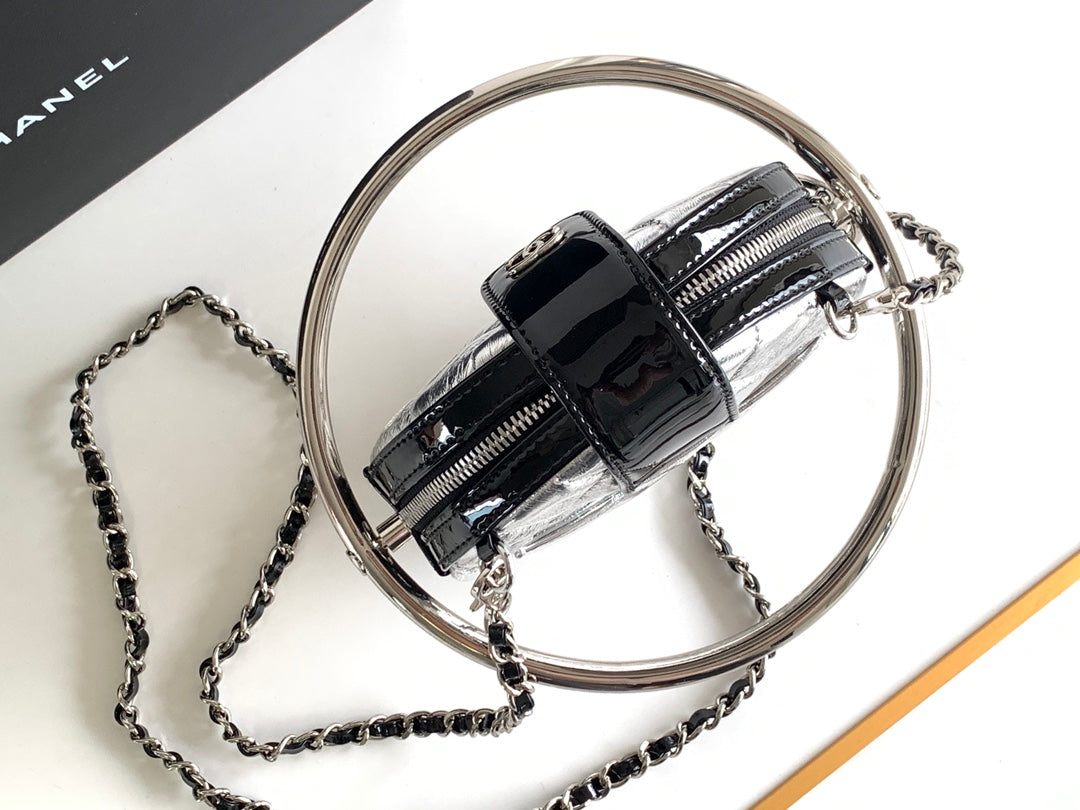 CC MINI 18 EARTH GLOBE ORB CHAIN BAG IN SILVER CALFSKIN